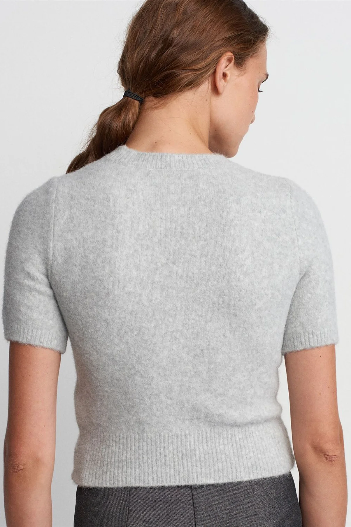 B.Yaka Yumuşak Dokulu Kısa Kol Gri Kazak