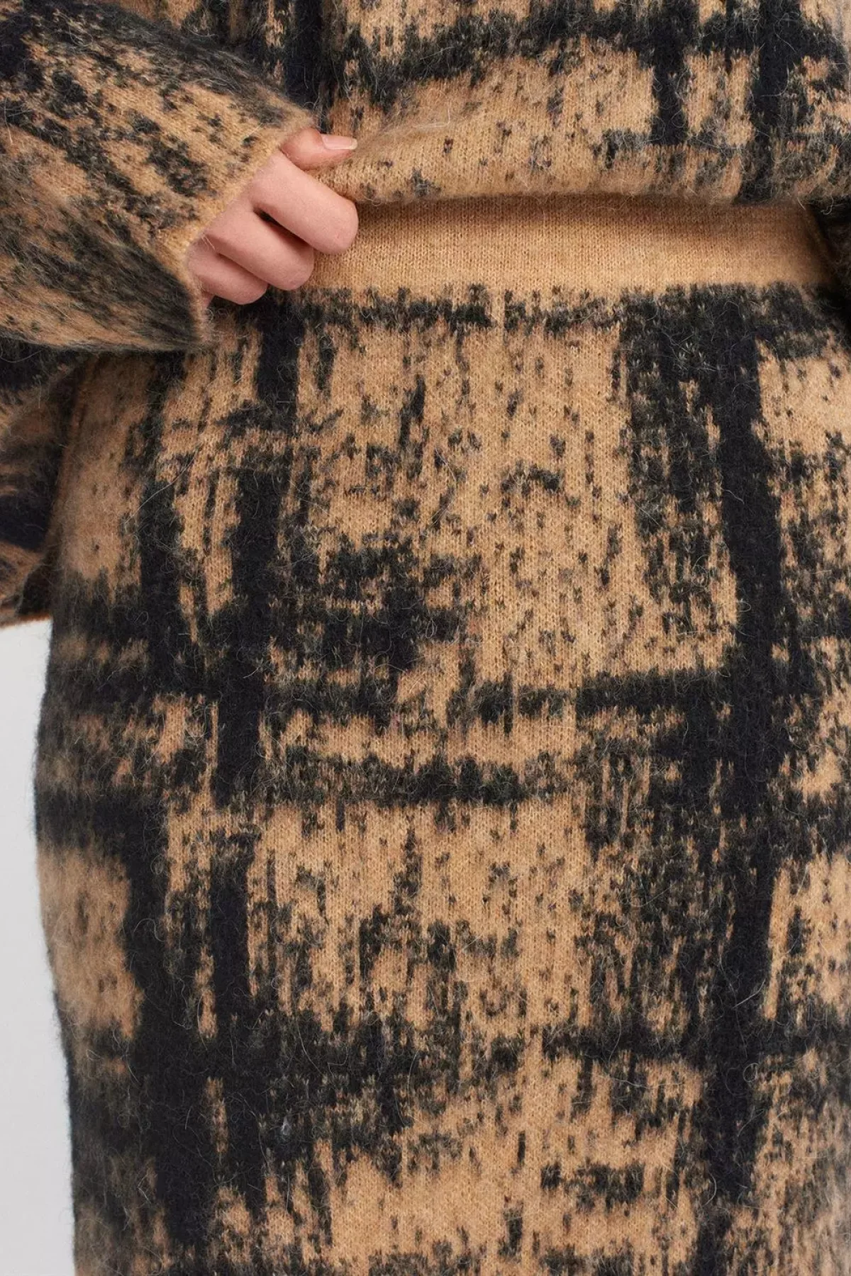 Beli Lastikli Şardonlu Camel Triko Etek