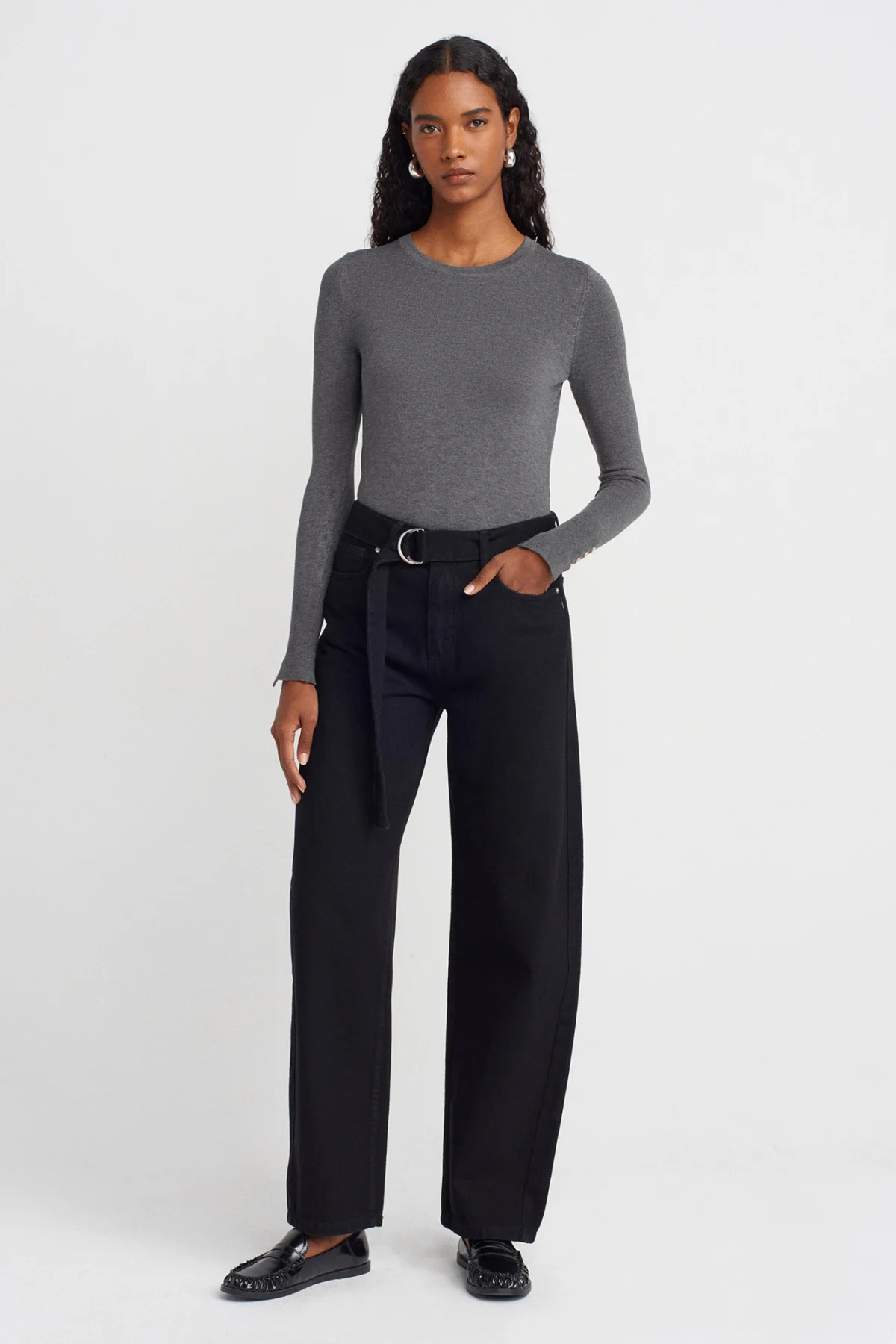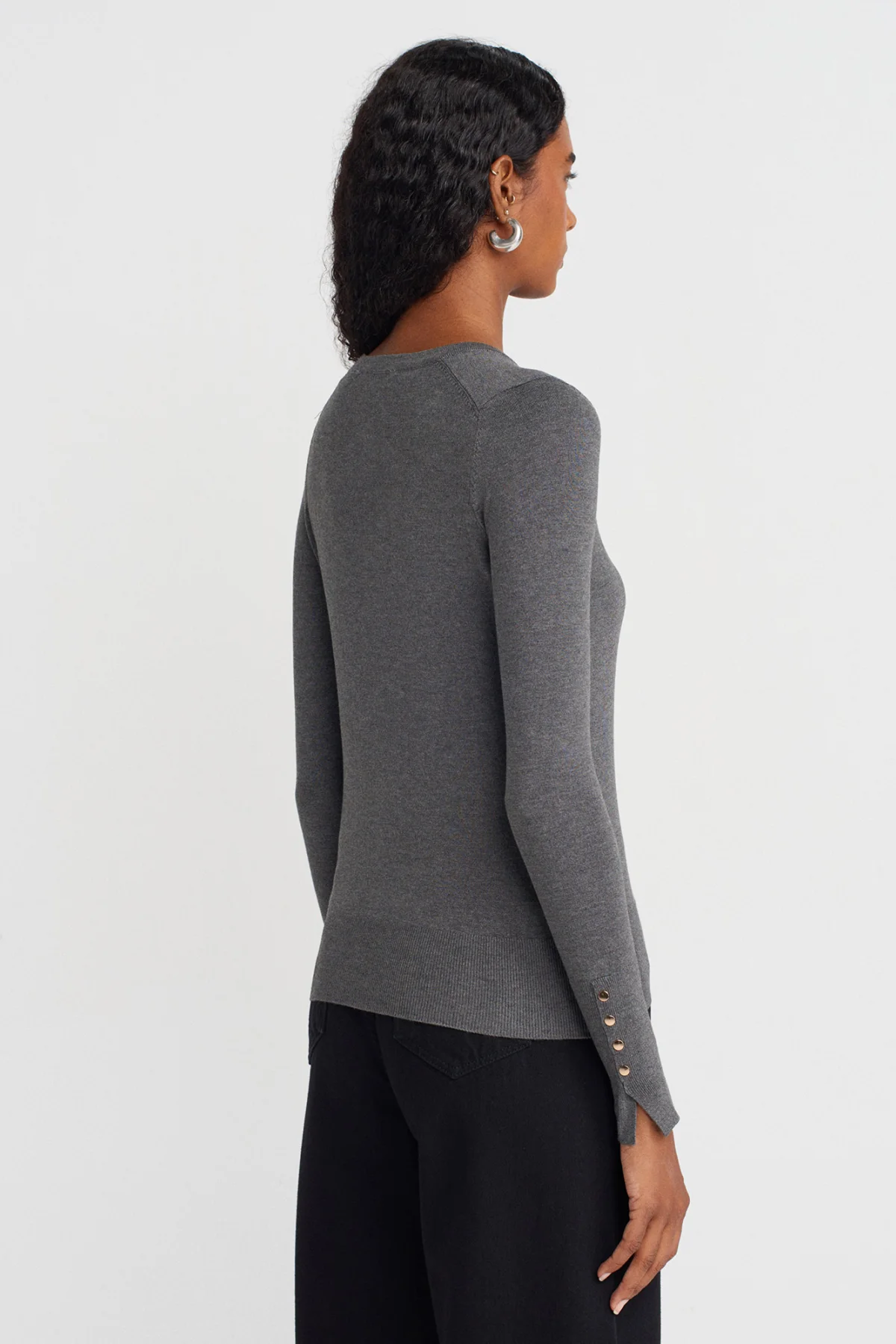 Bisiklet Yaka Kol Ortası Droplu Füme Kazak