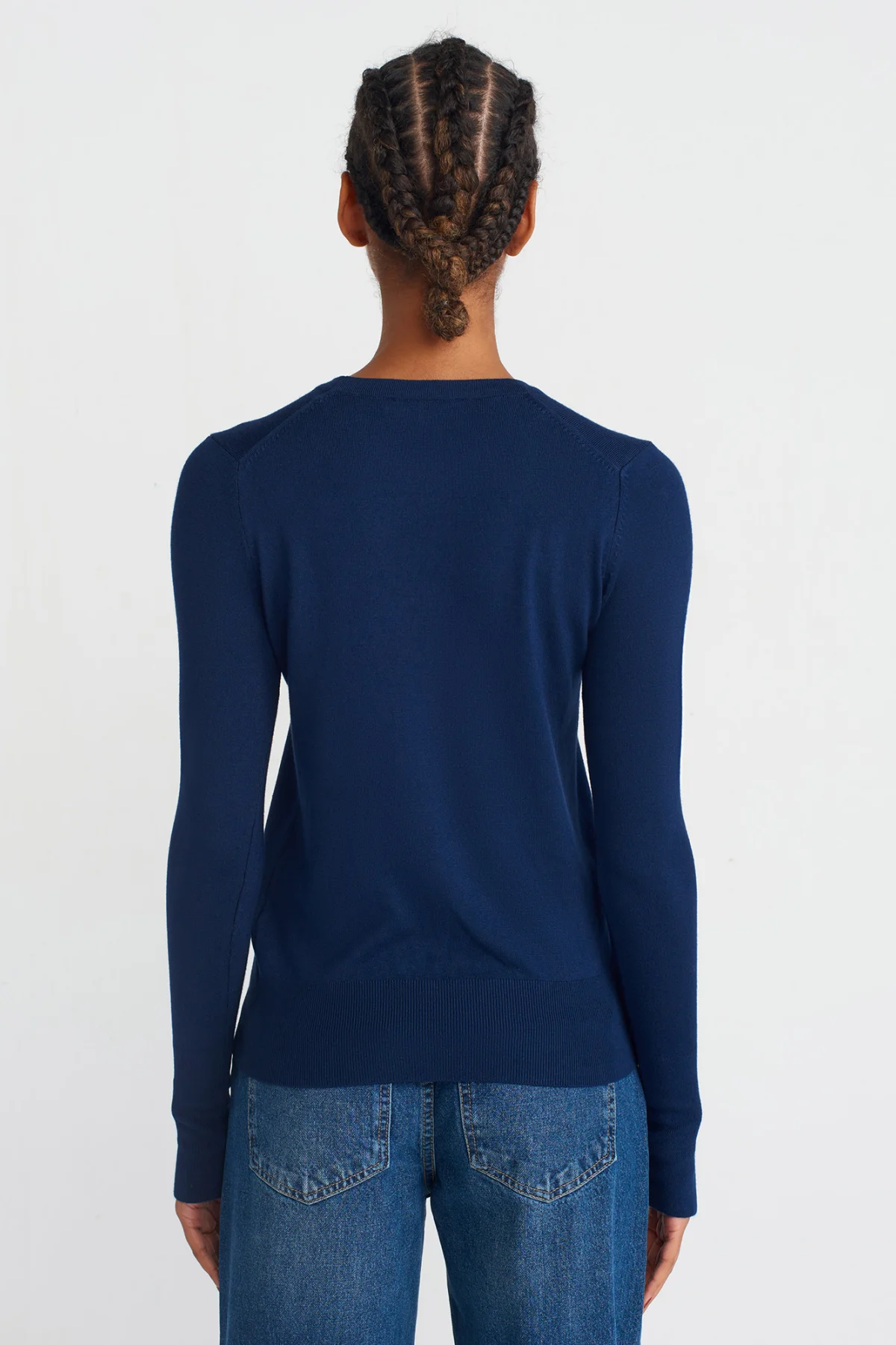 Bisiklet Yaka Kol Ortası Droplu Lacivert Kazak