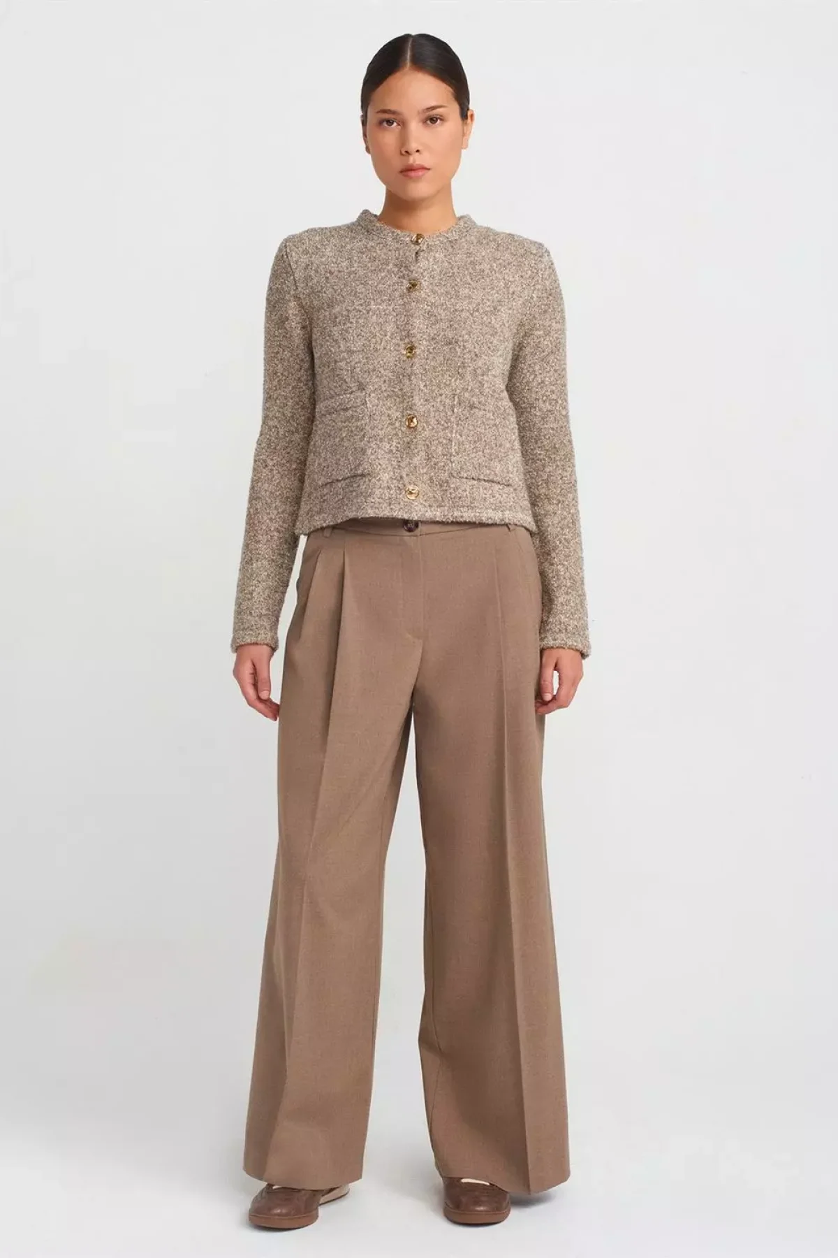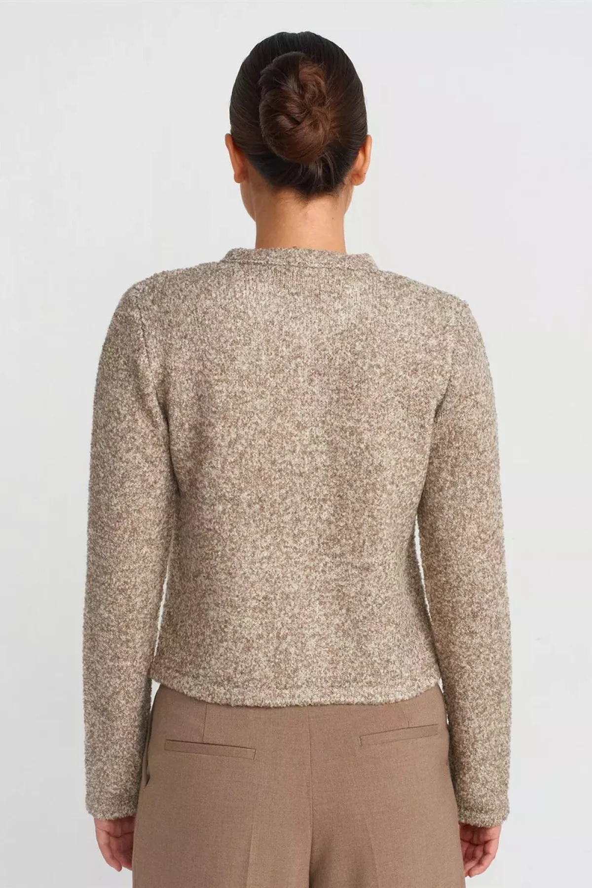 Buklet Cepli Düğmeli Vizon Triko Hırka
