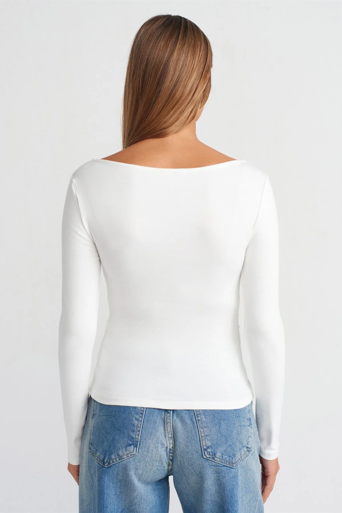 Büzgülü Kayık Yaka Ekru Top