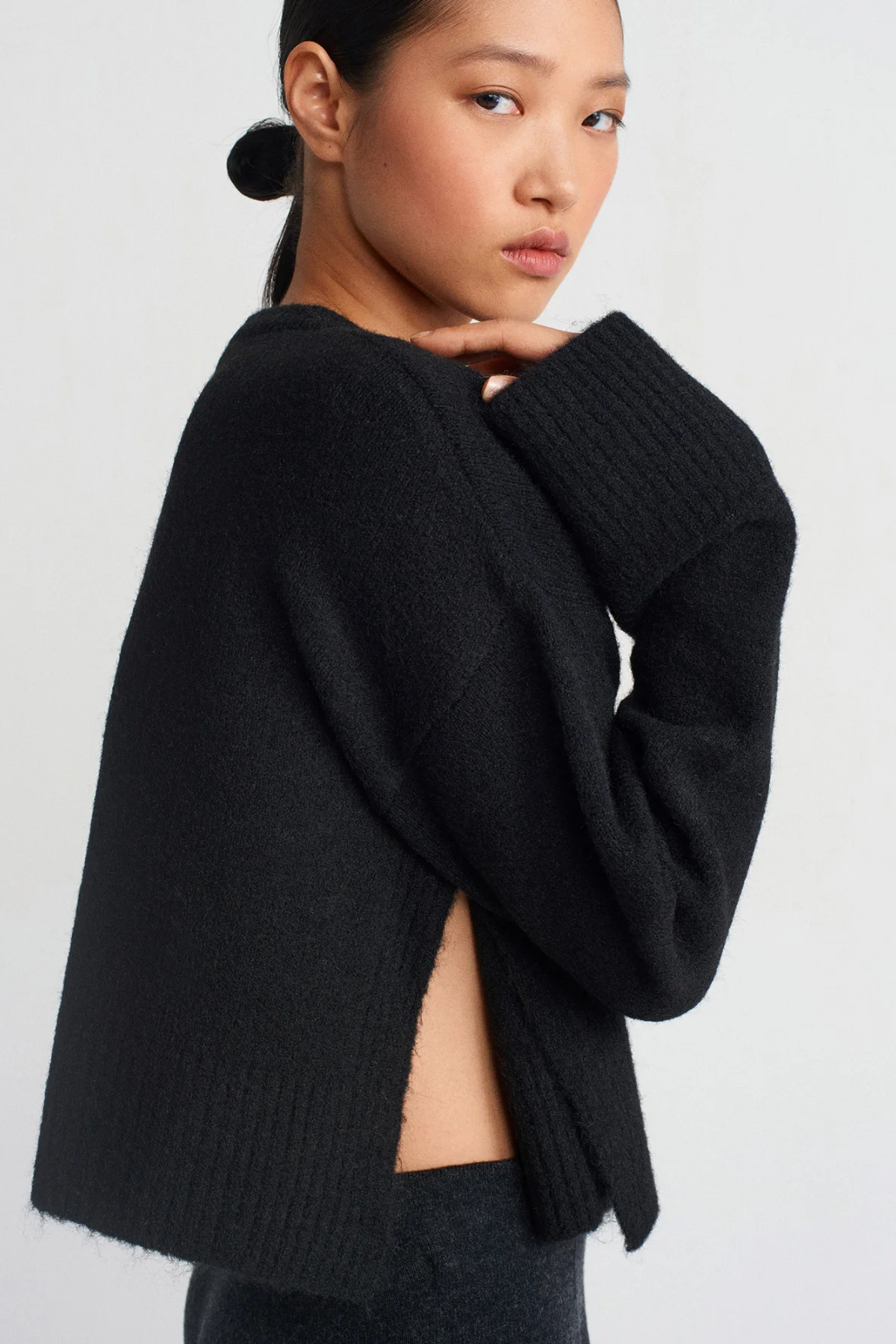 Dik Yaka Düğmeli Yumuşak Dokulu Siyah Hırka