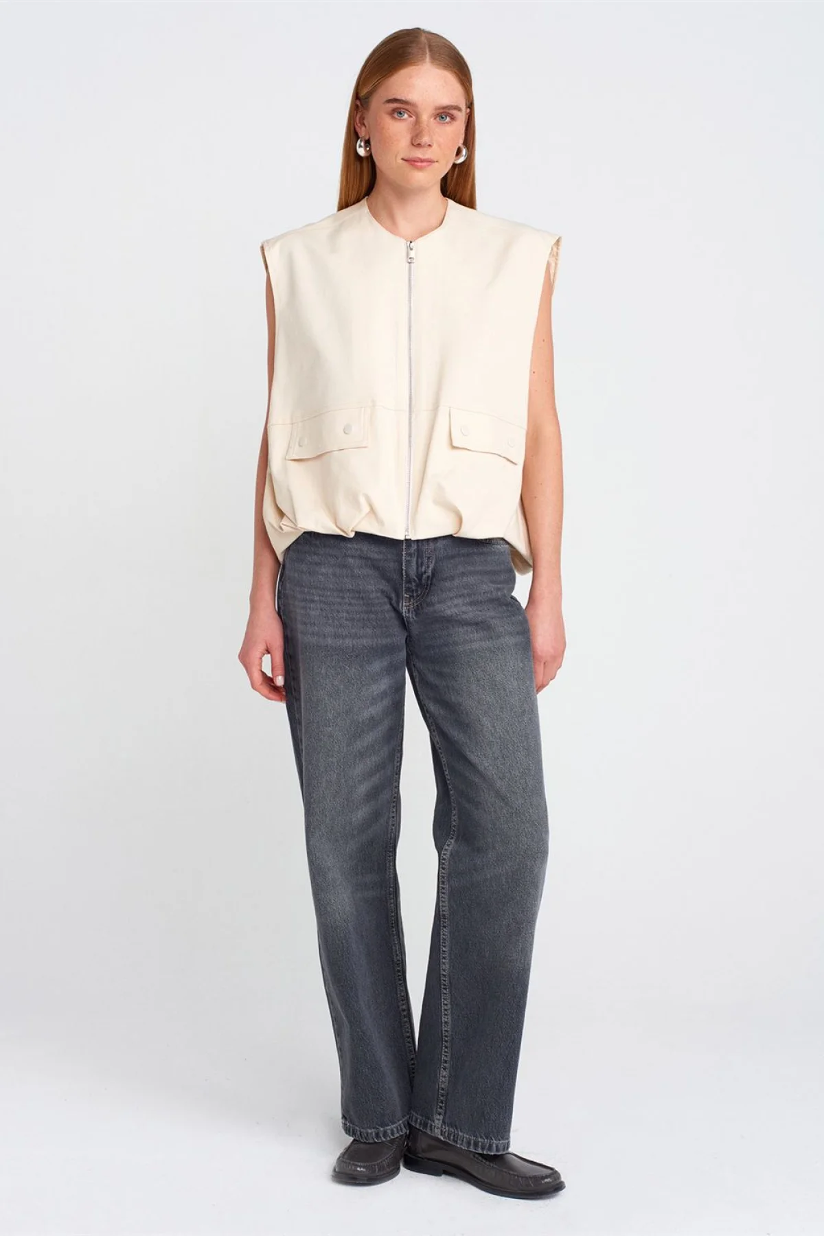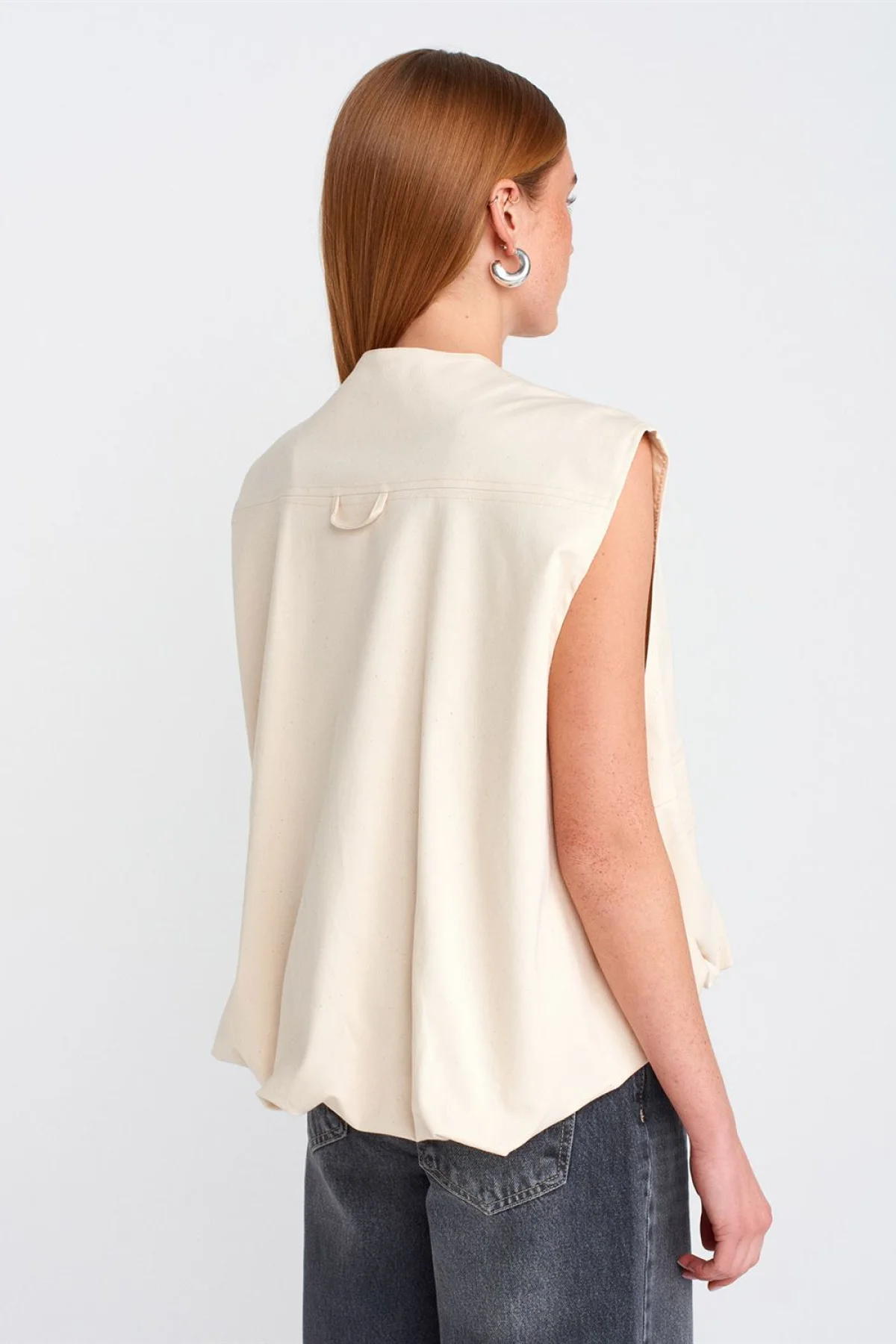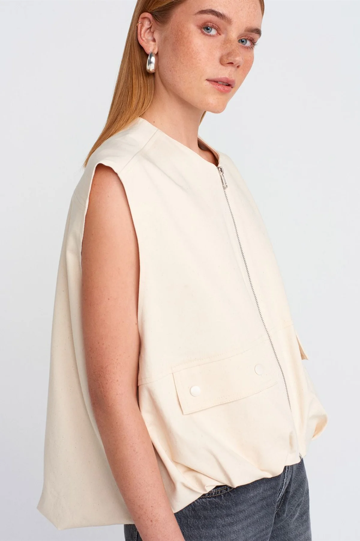 Etek Kısmı Büzgülü Ekru Balon Yelek