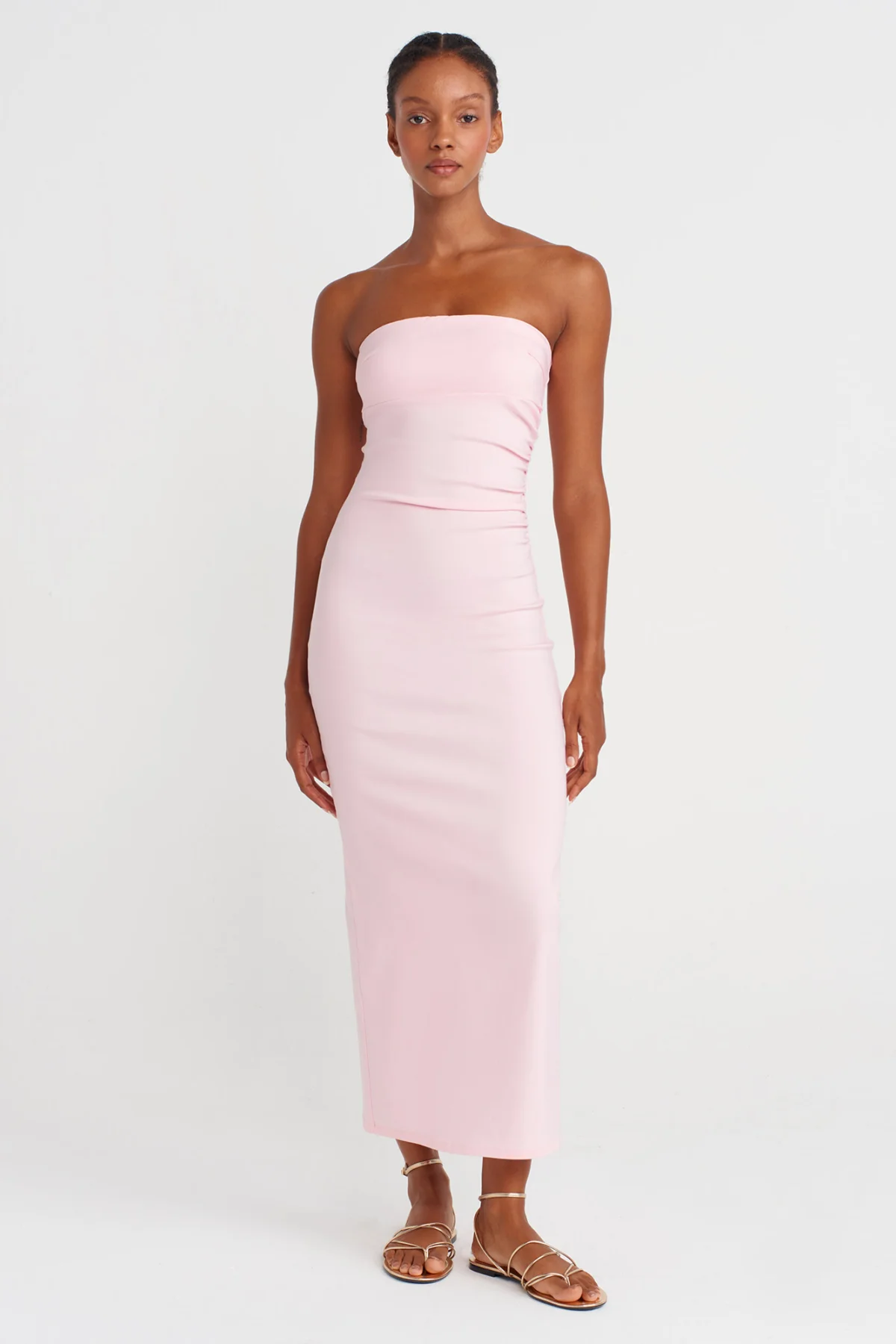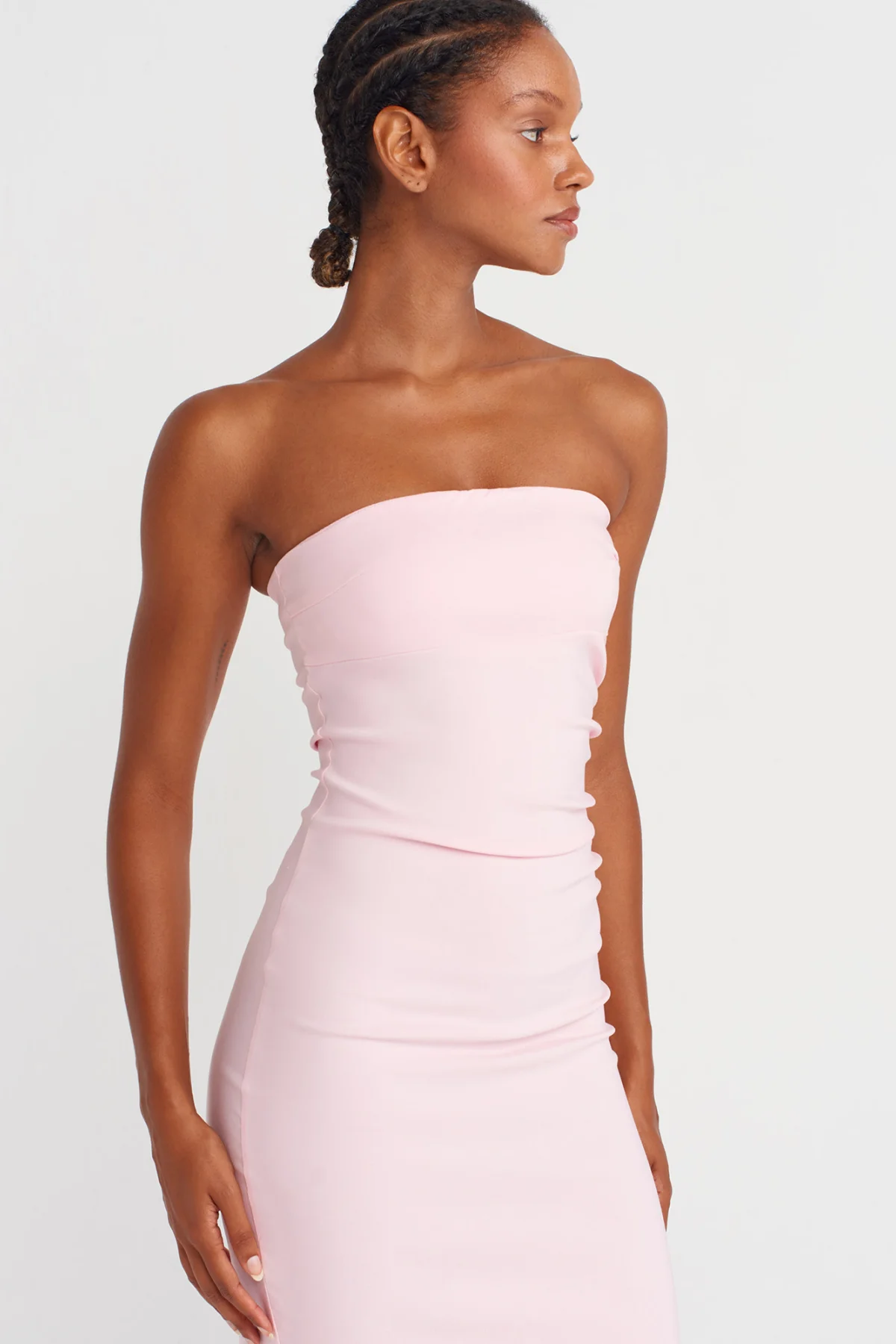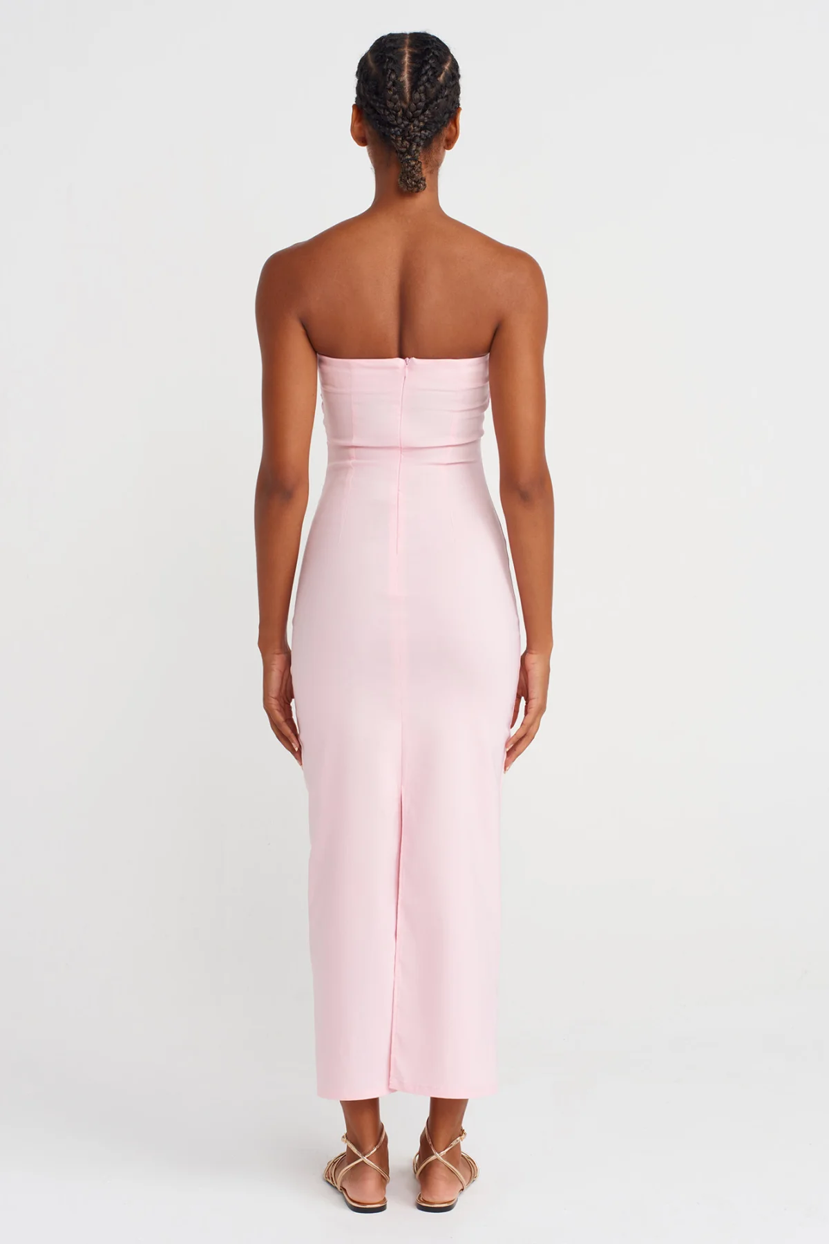 “Straplez Drapeli Midi Pembe Elbise” için yorum yapan ilk kişi siz olun
