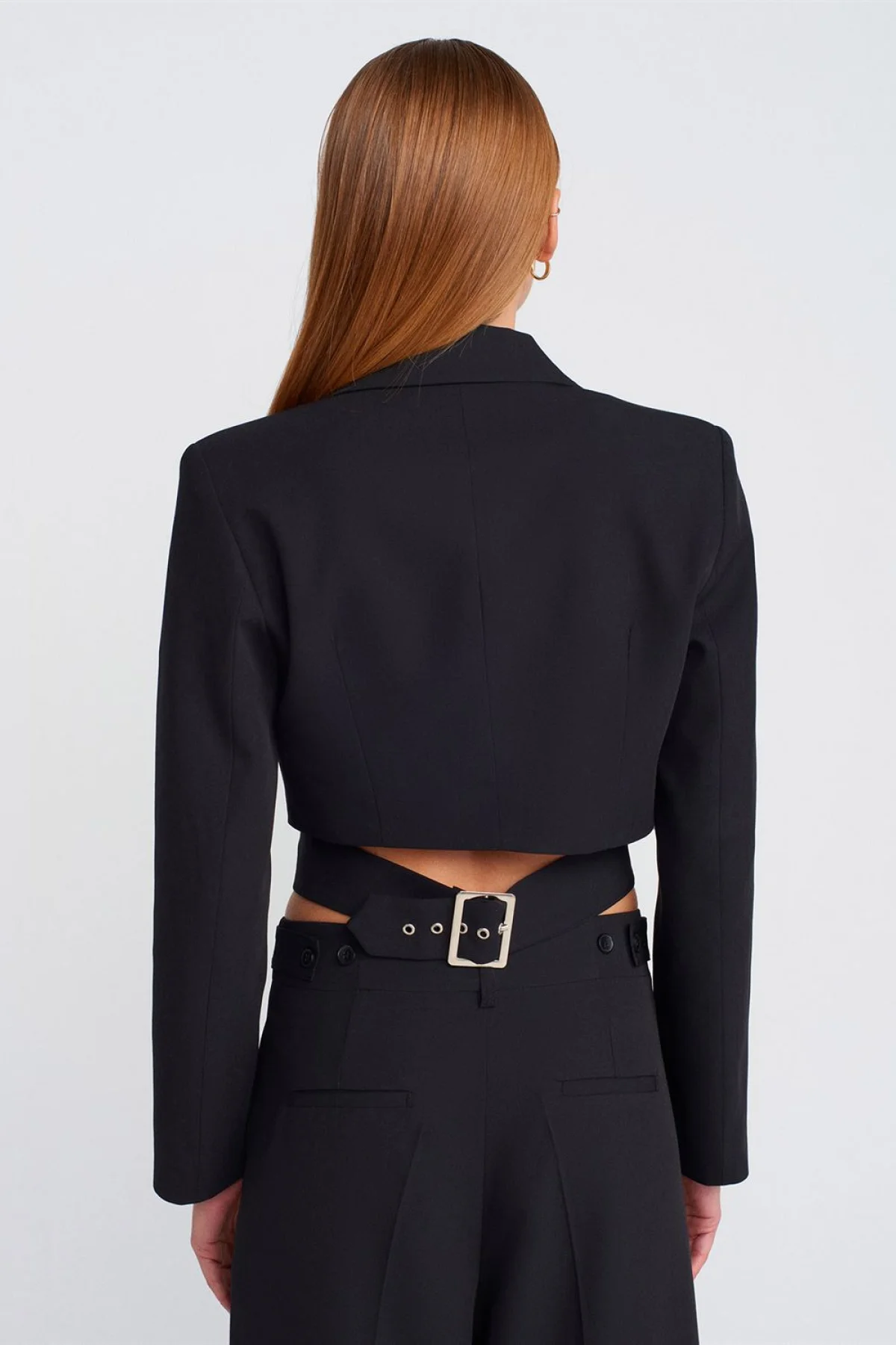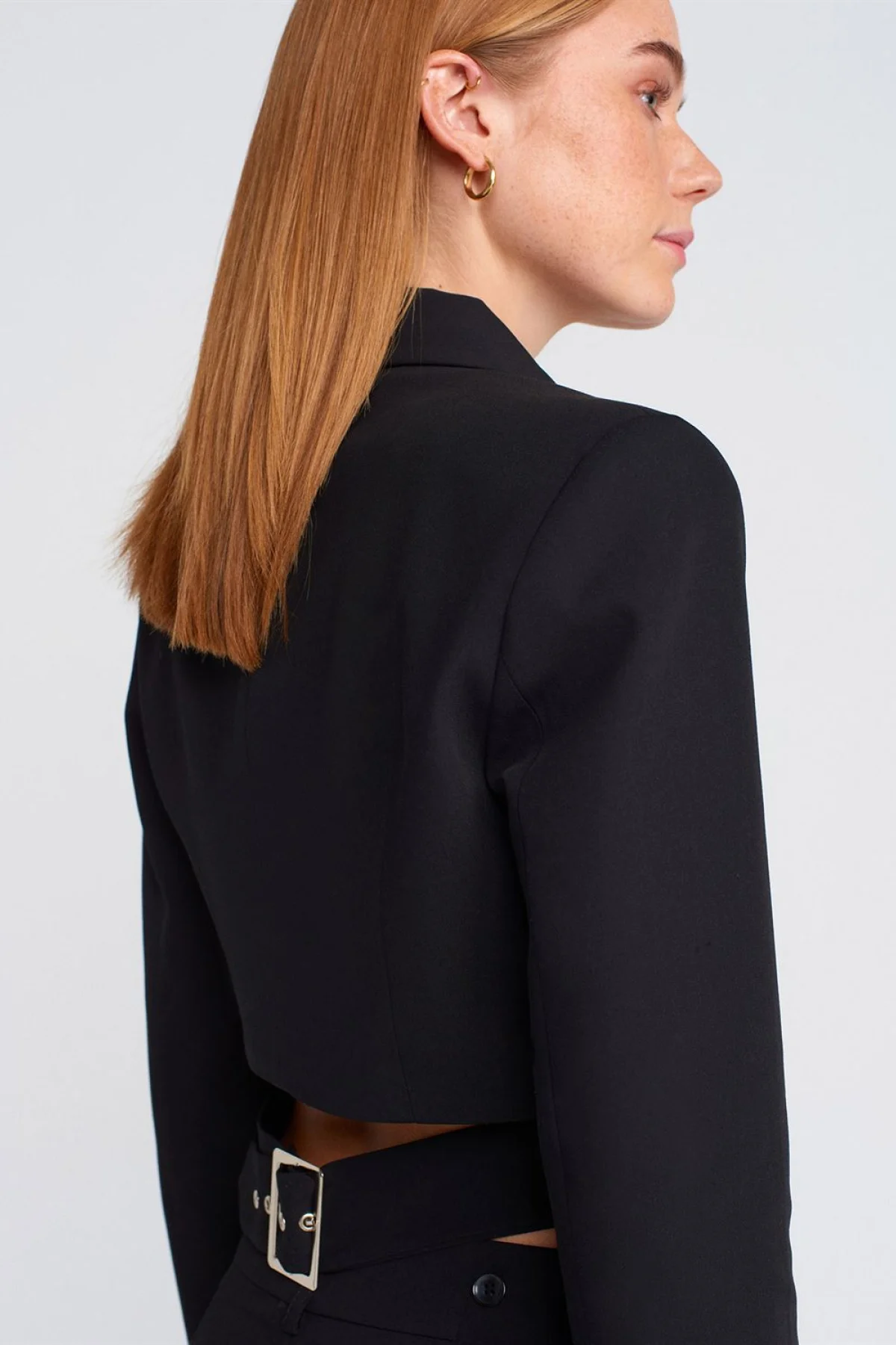 Toka Detaylı Crop Siyah Blazer