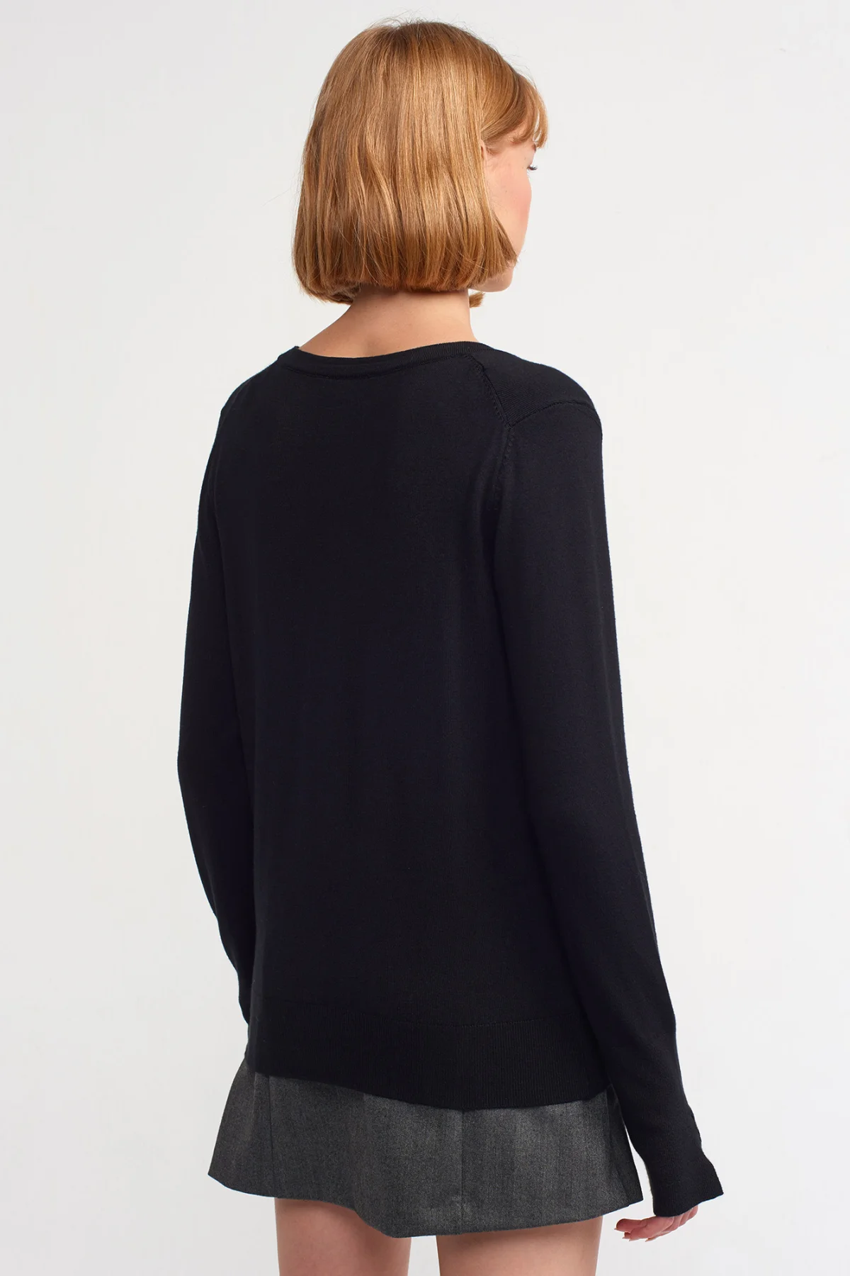 “V Yaka Kolu Yırtmaçlı Siyah Kazak” için yorum yapan ilk kişi siz olun