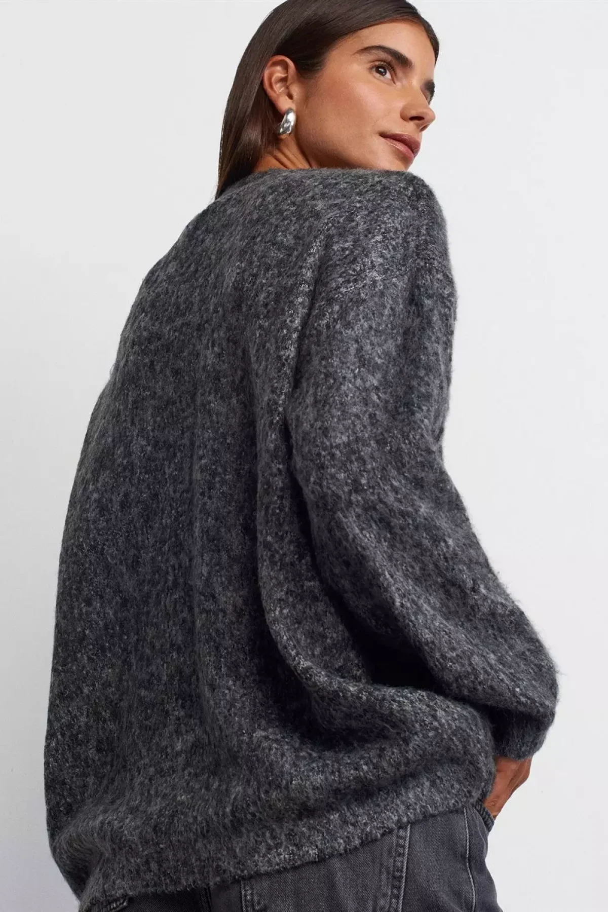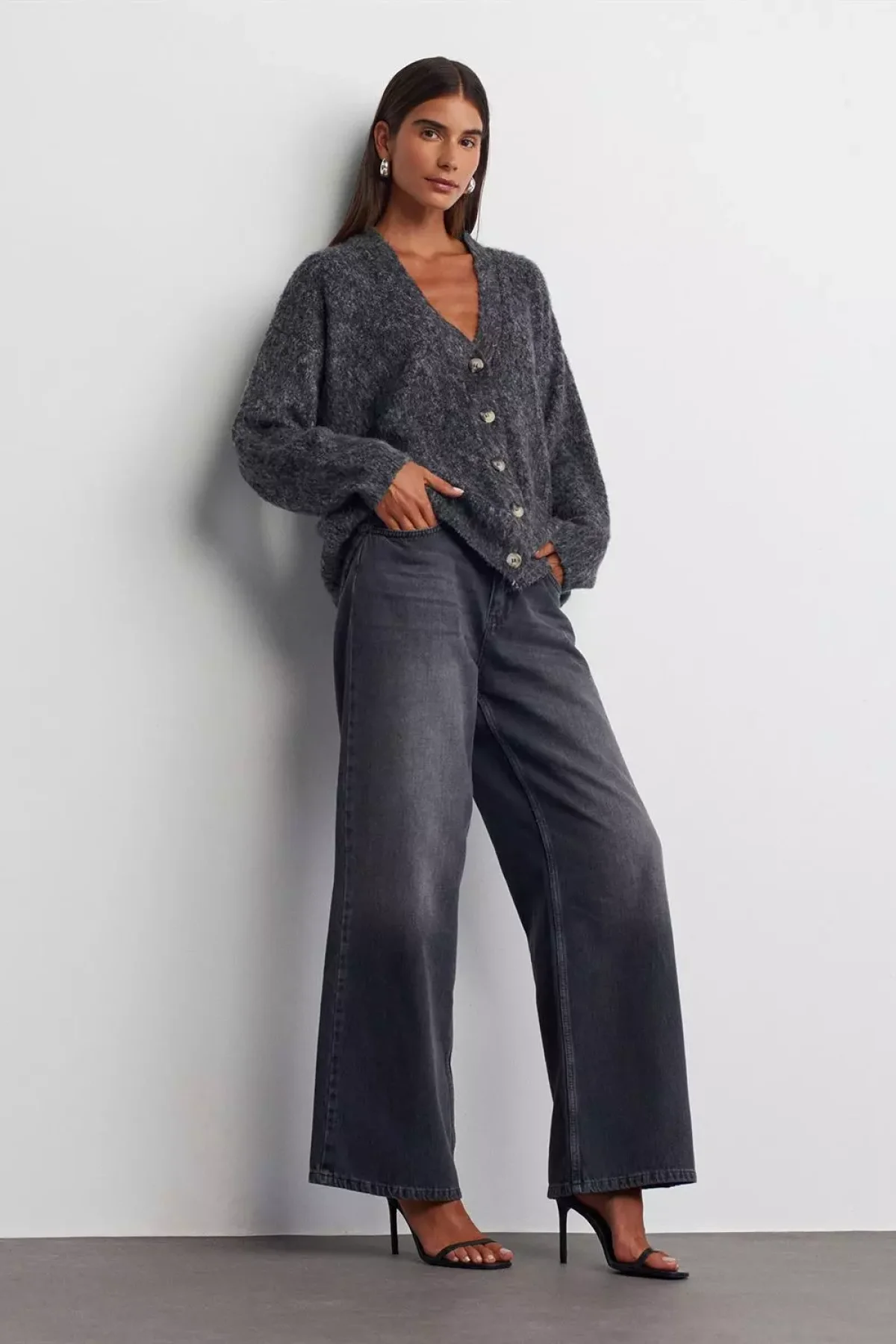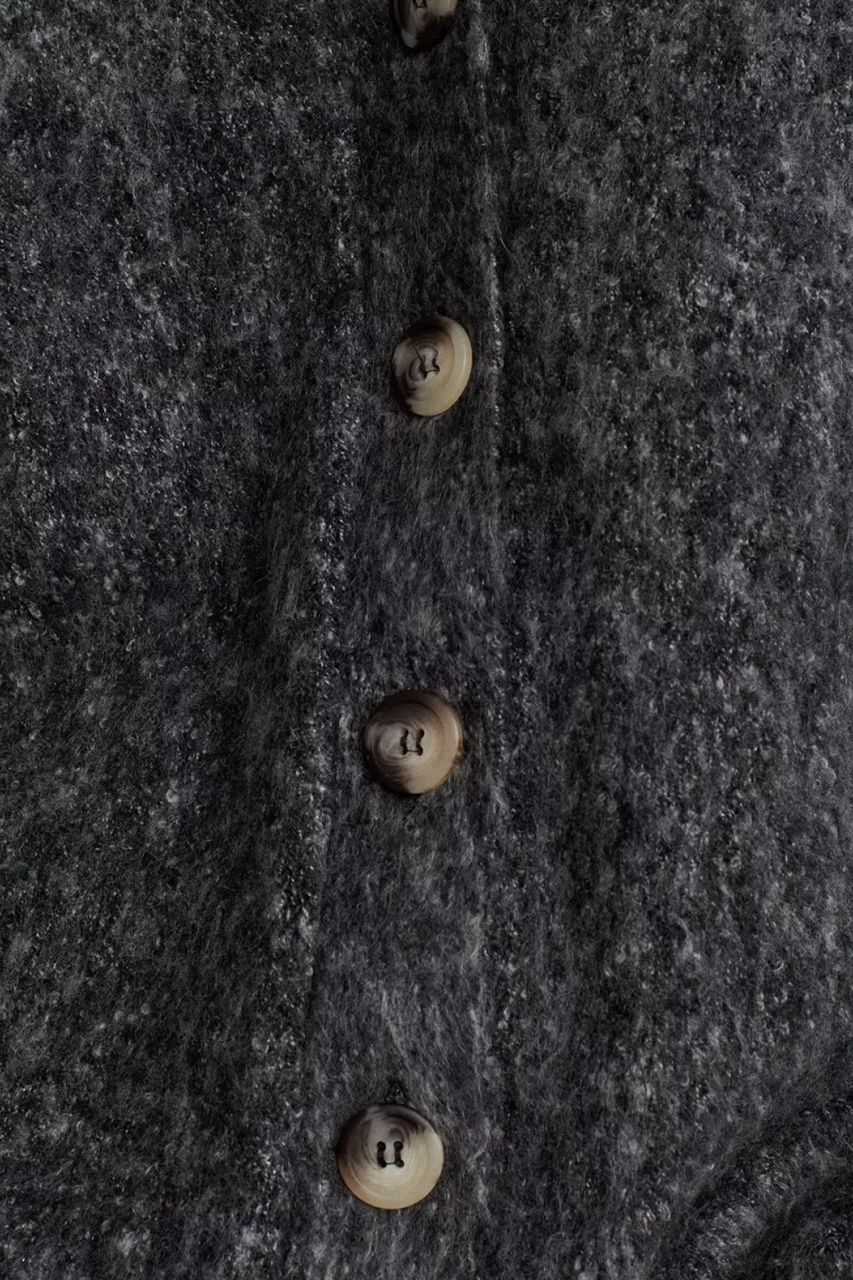 V Yaka Şardonlu Düğmeli Antrasit Hırka