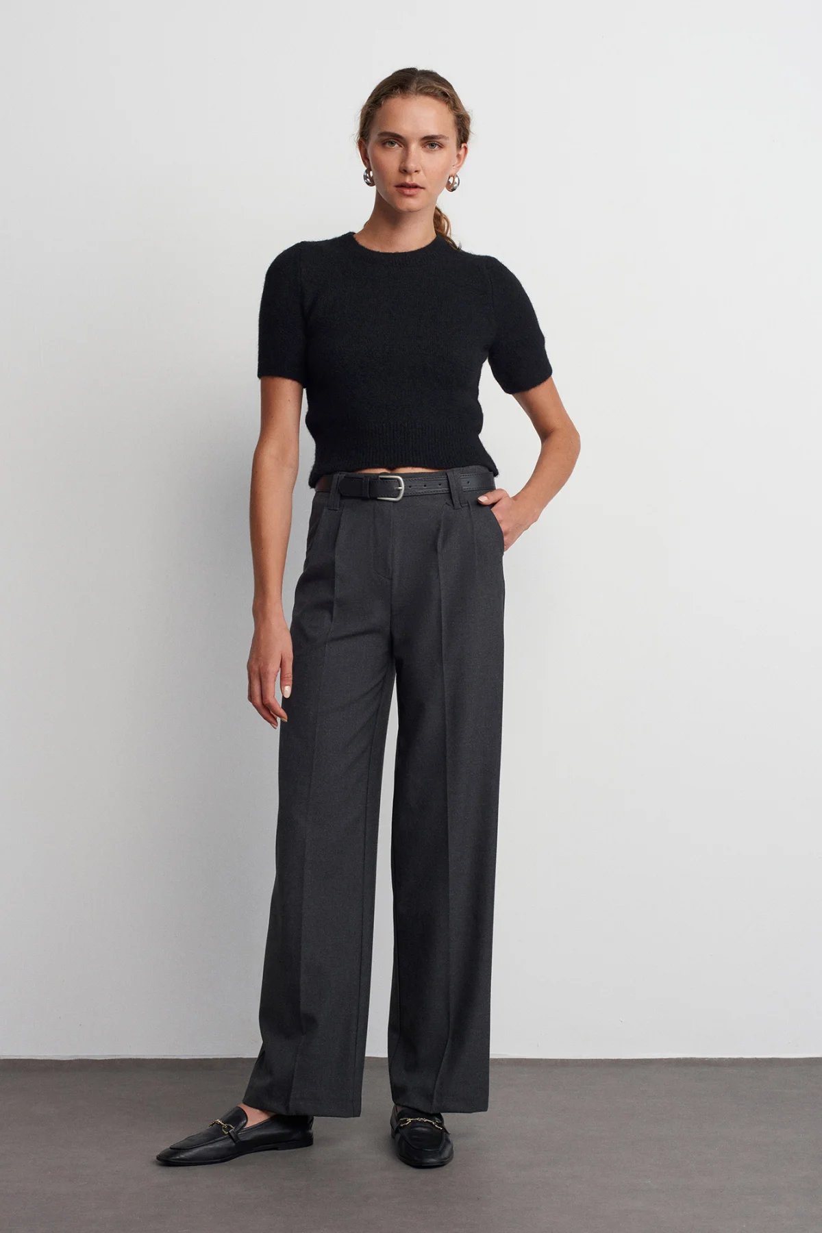 Yumuşak Dokulu Kısa Kol Triko Siyah Kazak