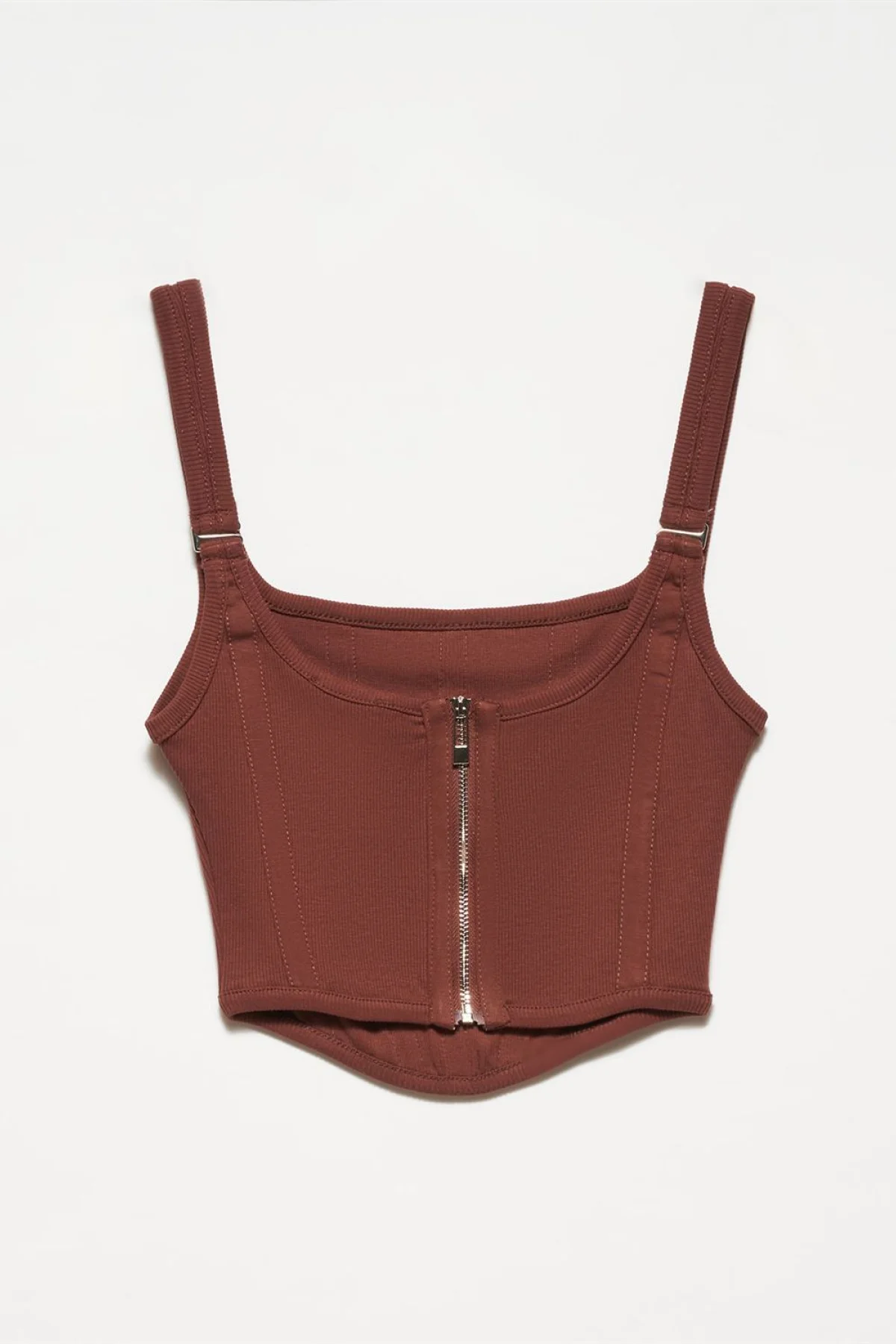 Arkası Fermuarlı Kahverengi Korse Top