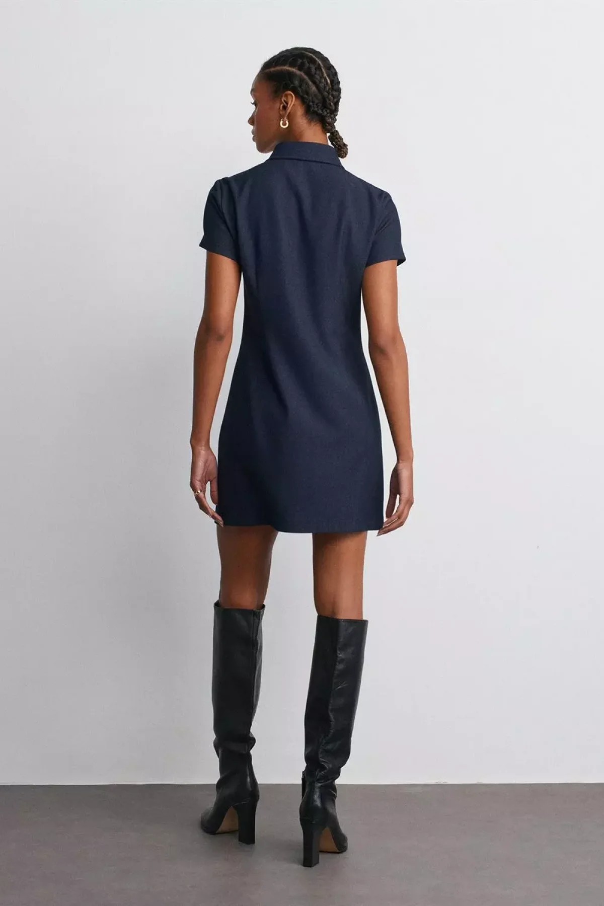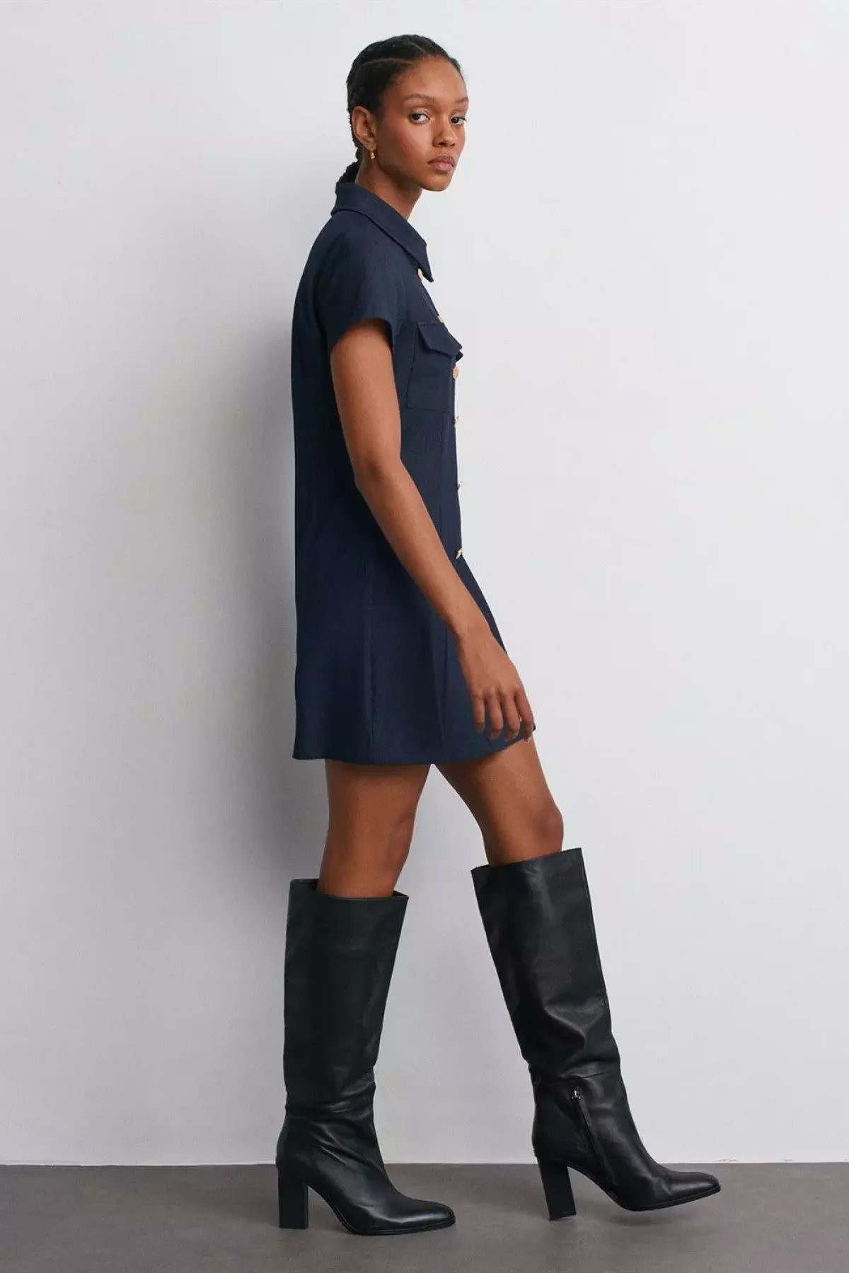 Altın Düğmeli Kısa Lacivert Elbise