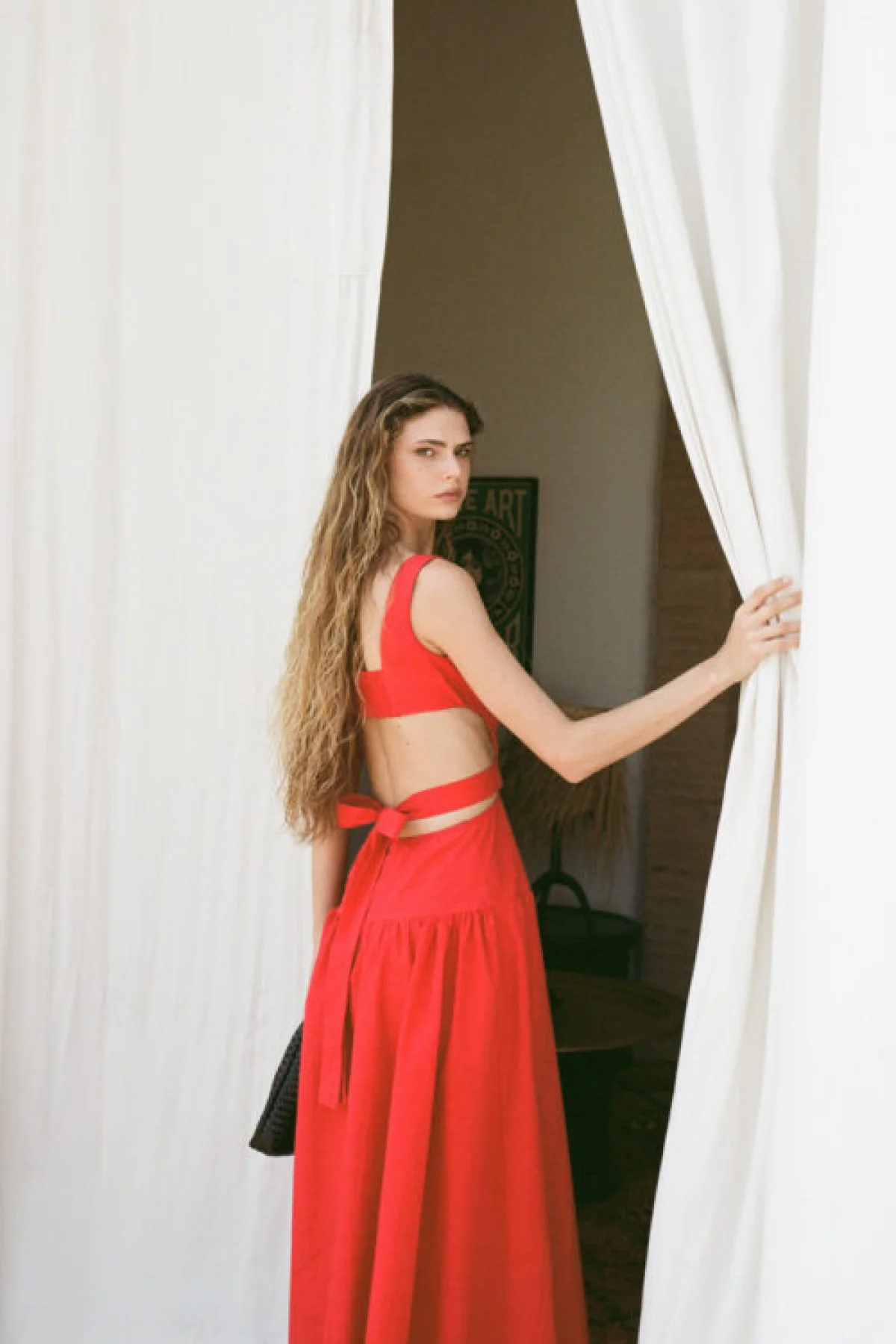 “Arkadan Bağcıklı Maxi Kırmızı Elbise” için yorum yapan ilk kişi siz olun