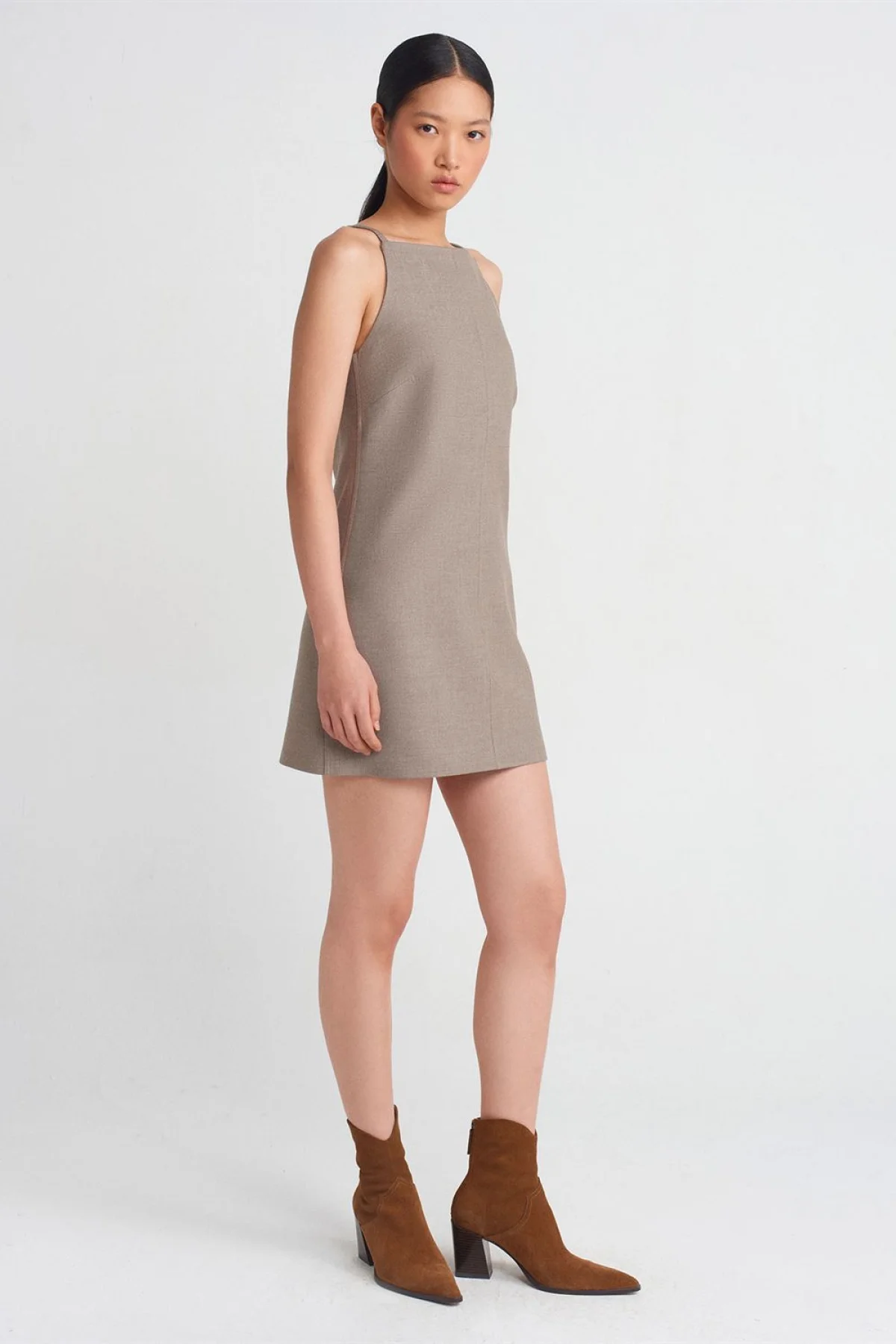 Askılı Kısa Camel Elbise