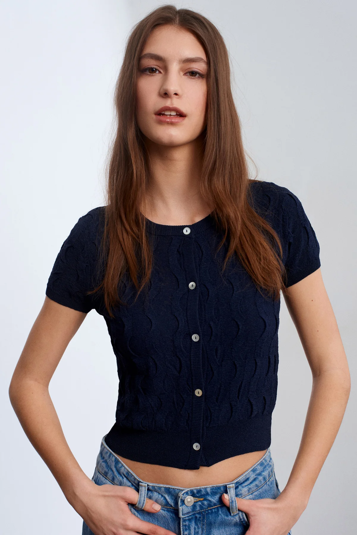 “B.Yaka Dokulu Düğmeli Koyu Lacivert Hırka” için yorum yapan ilk kişi siz olun