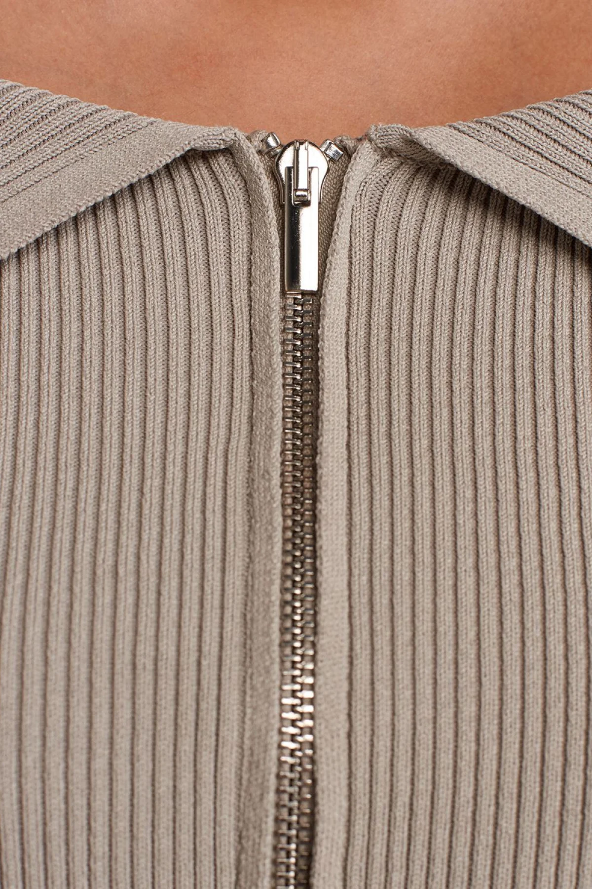 Bardot Yaka Fermuarlı Triko Vizon Hırka