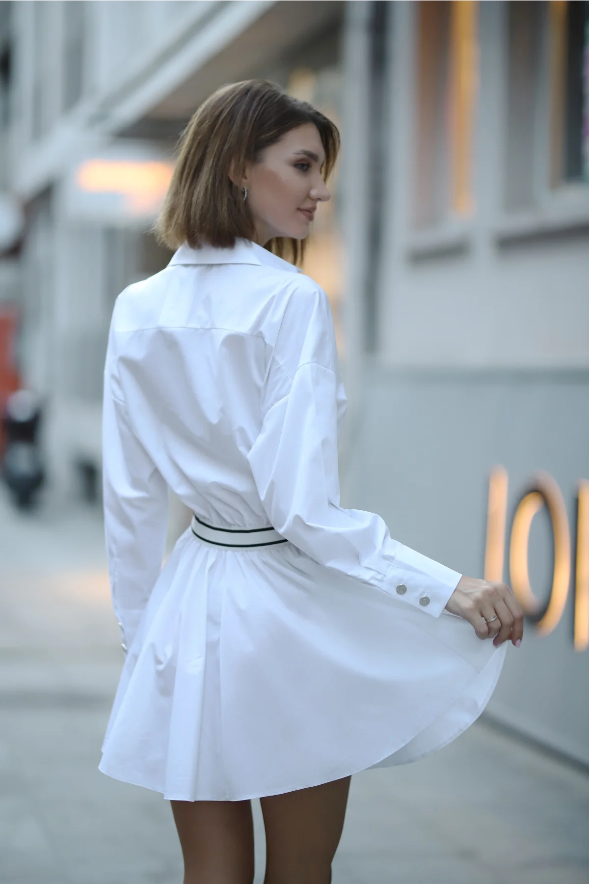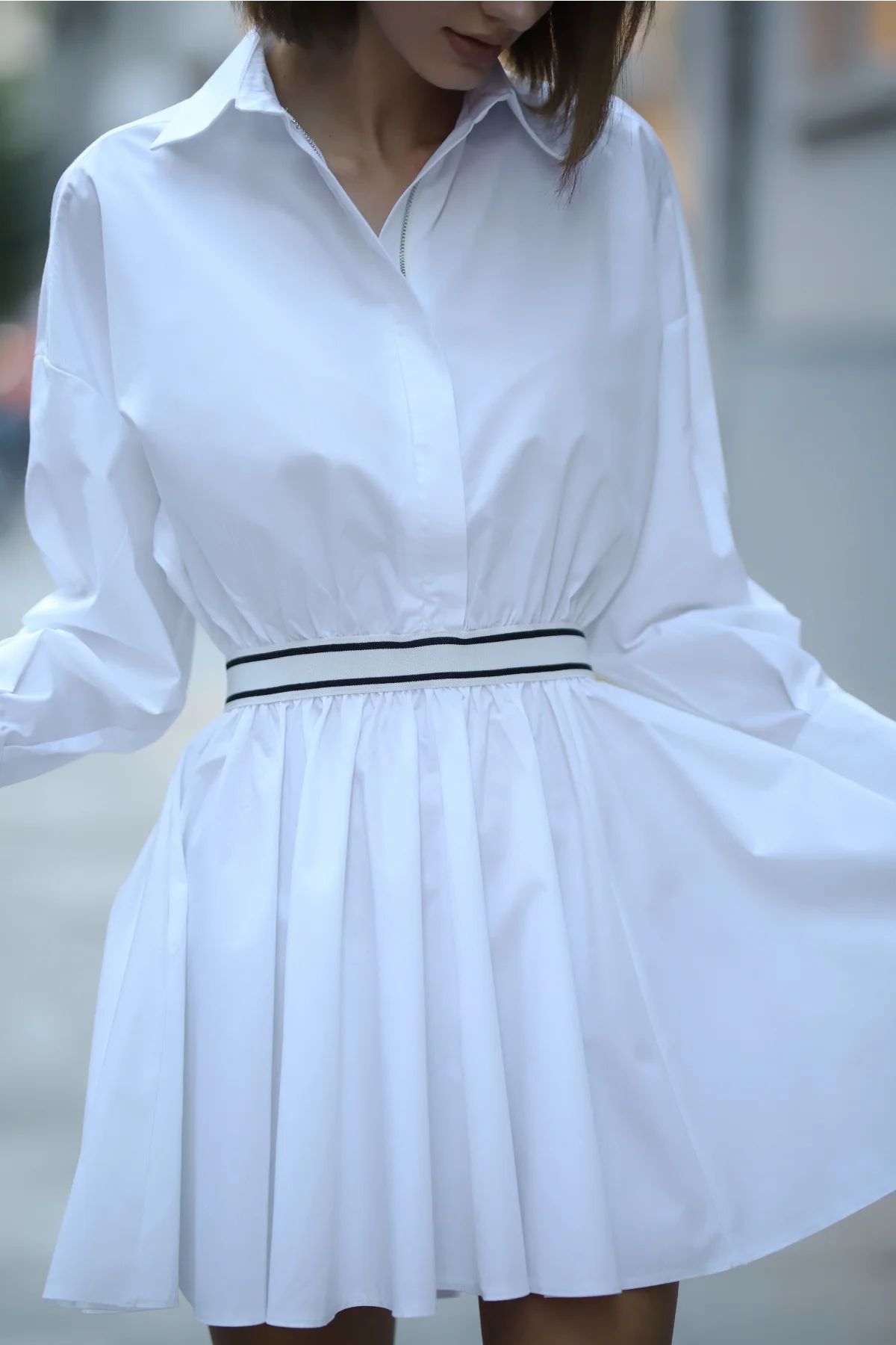 Beli Lastikli Fermuarlı Mini Beyaz Elbise