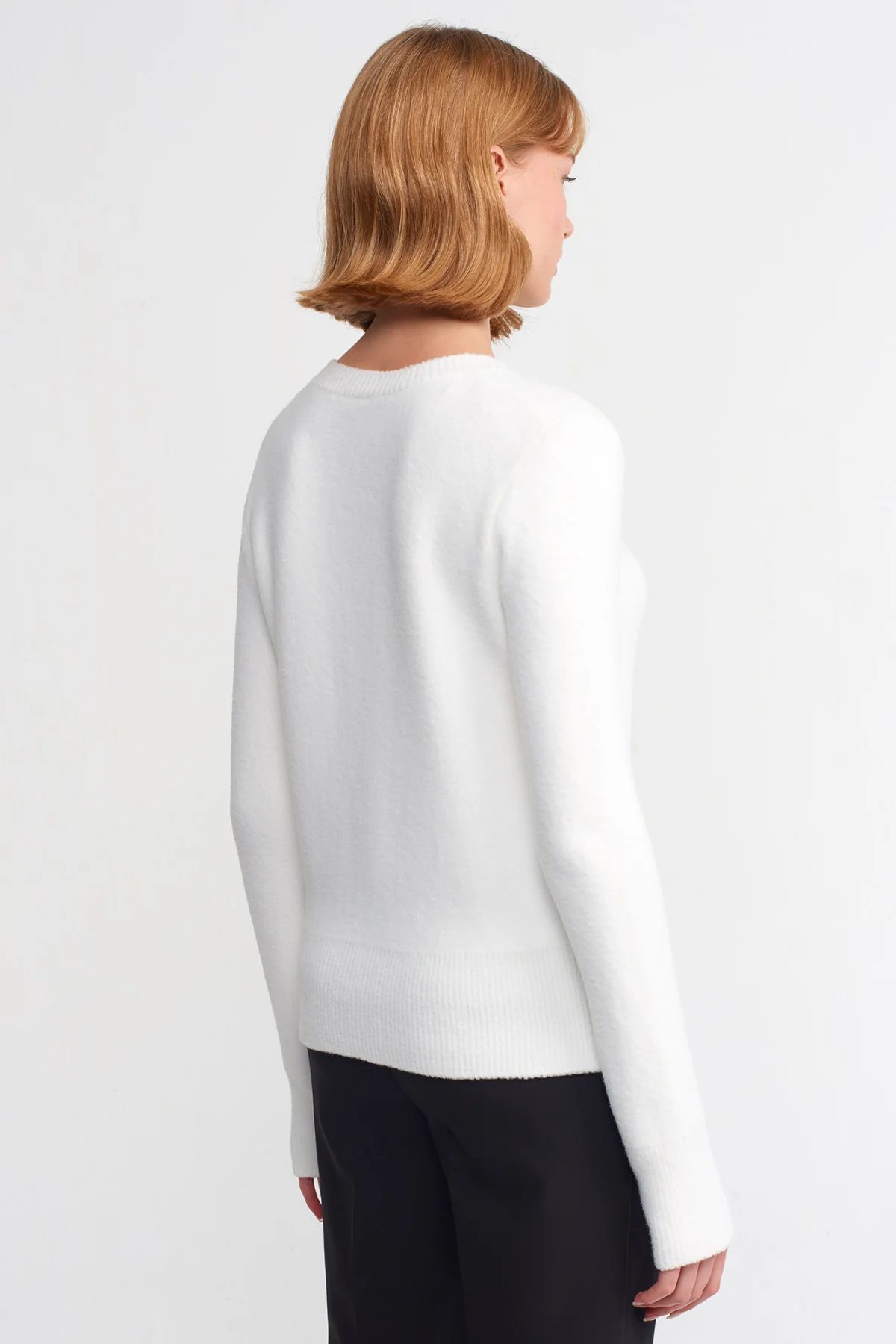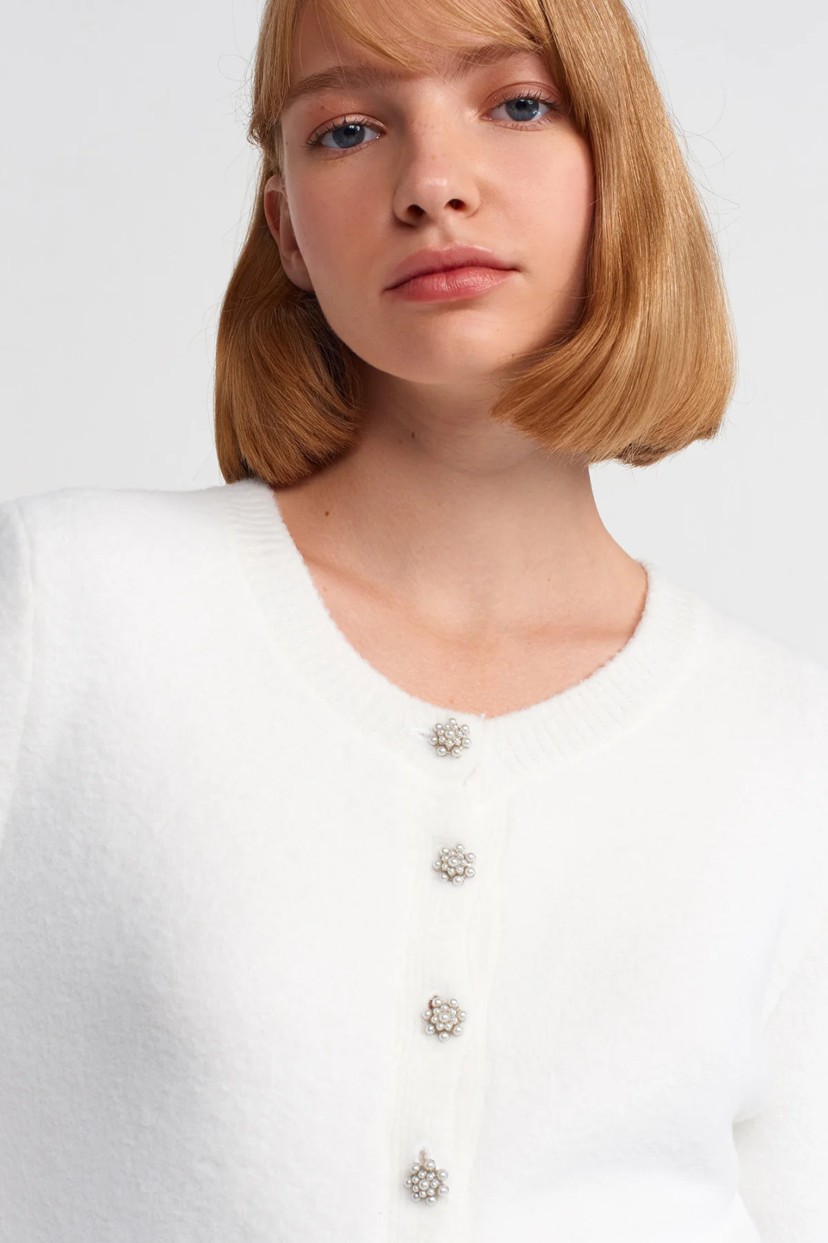Bisiklet Yaka İnci Düğmeli Ekru Hırka