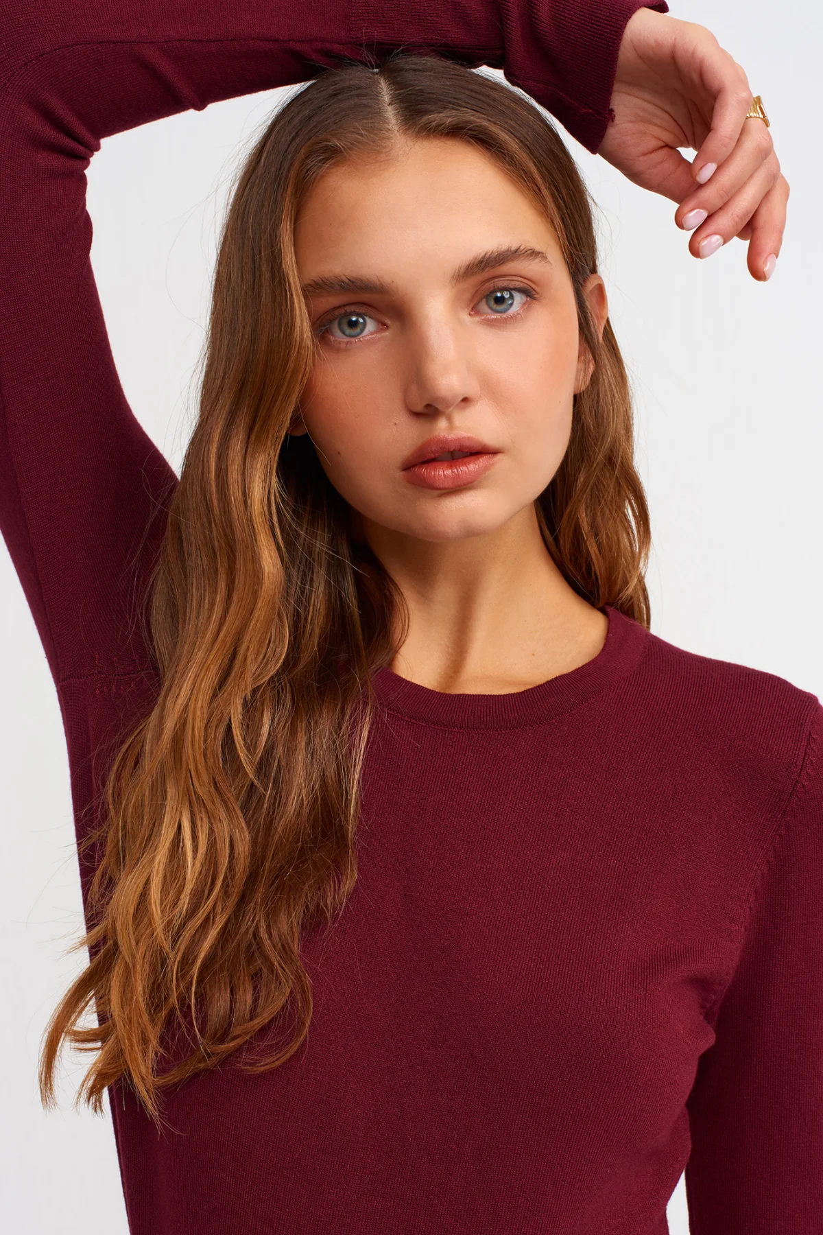Bisiklet Yaka Kol Ortası Droplu Bordo Kazak