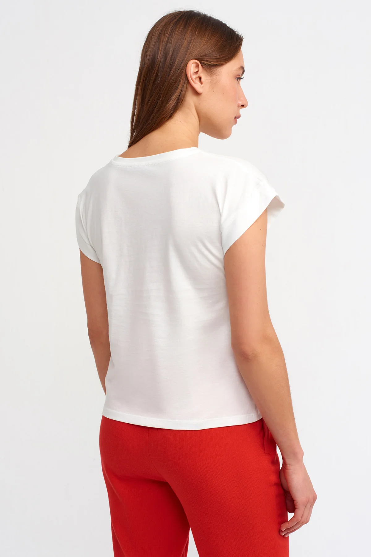 Bisiklet Yaka Pamuklu Ekru T-Shirt