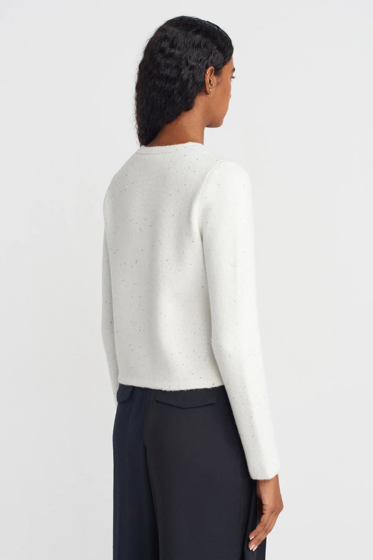 Bisiklet Yaka Pullu Simli Düğmeli Krem Hırka
