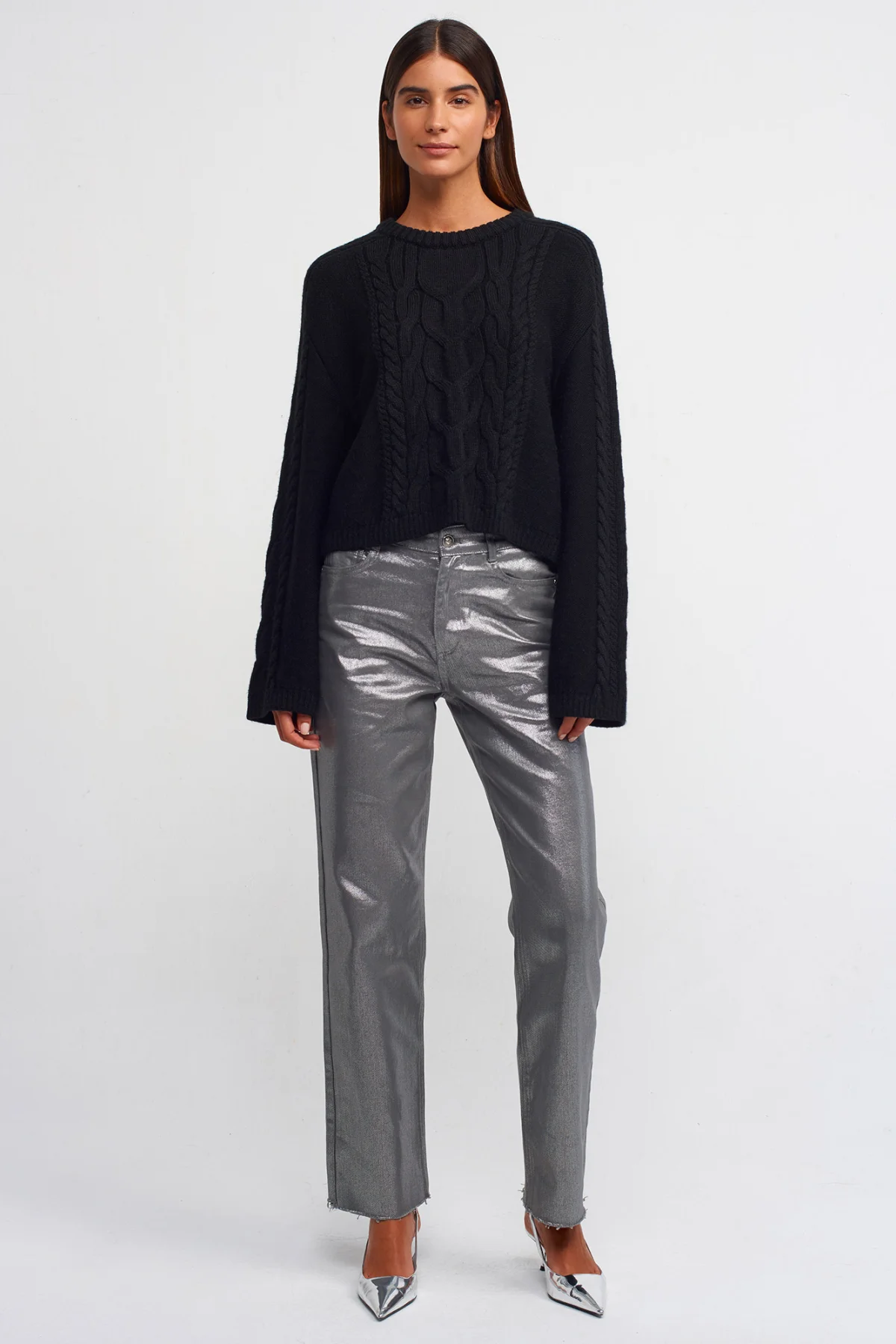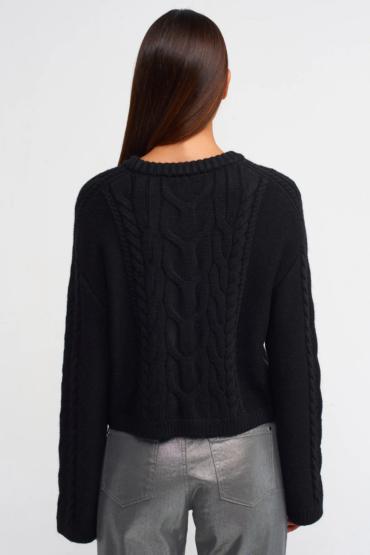 Bisiklet Yaka Saç Örgü Siyah Kazak