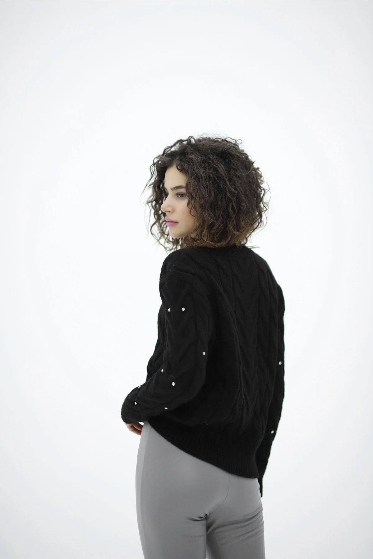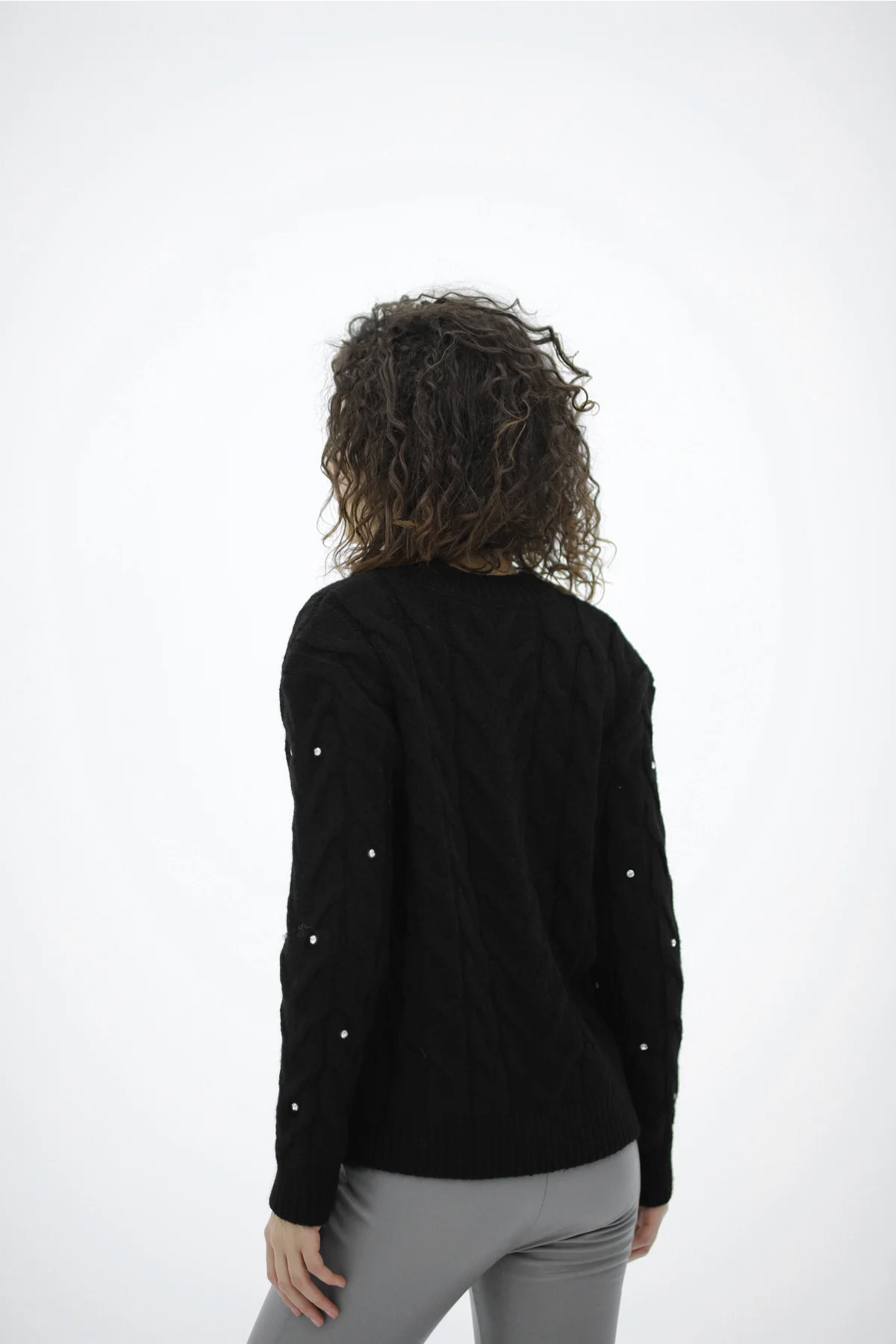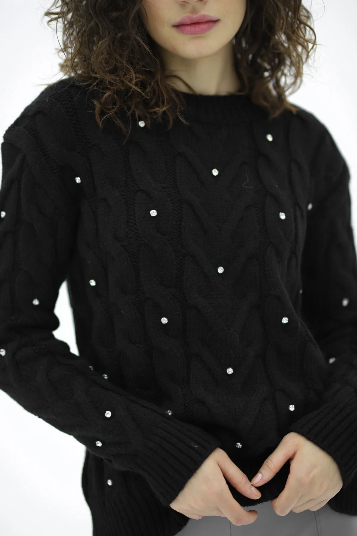 Bisiklet Yaka Taş Çakımlı Siyah Kazak