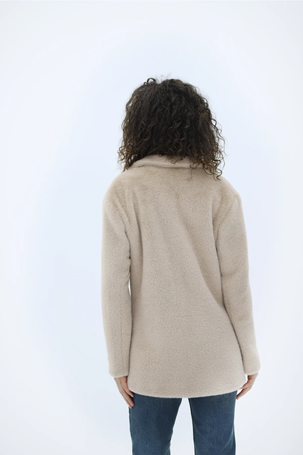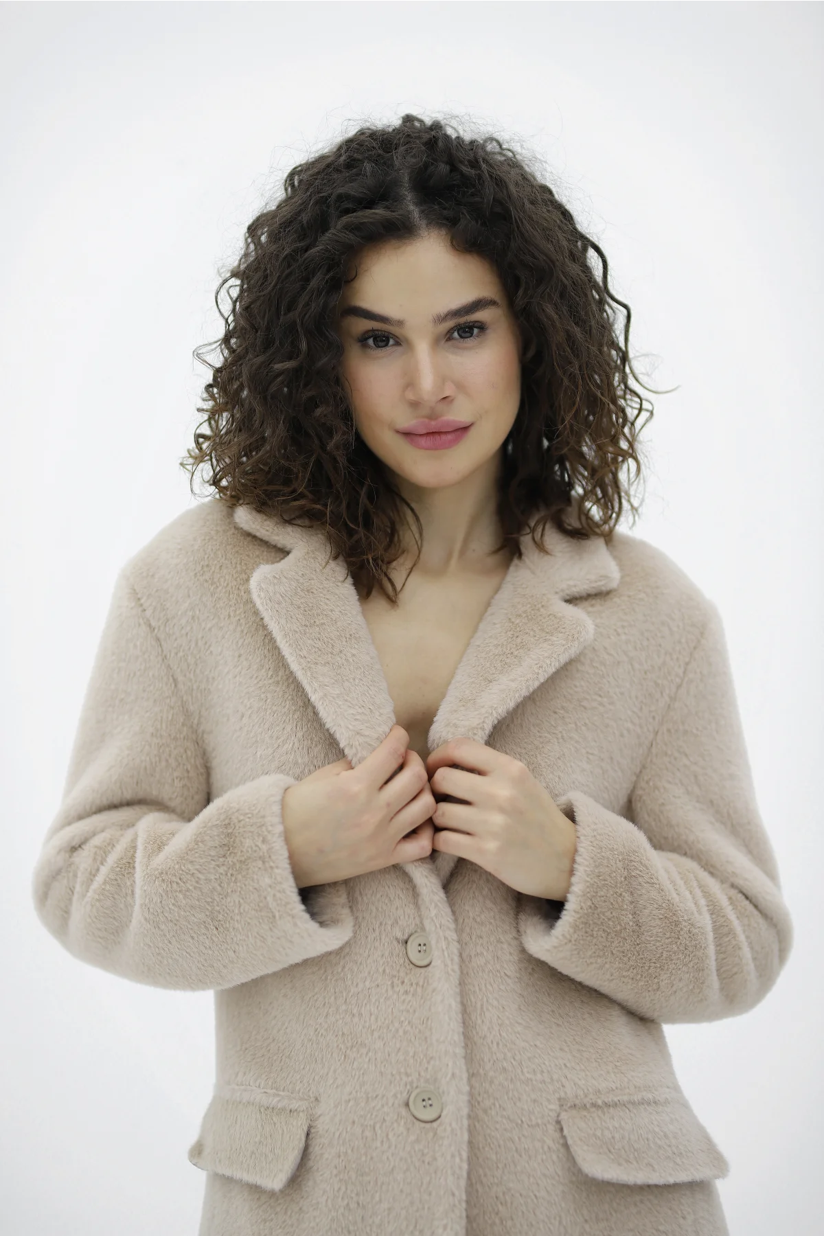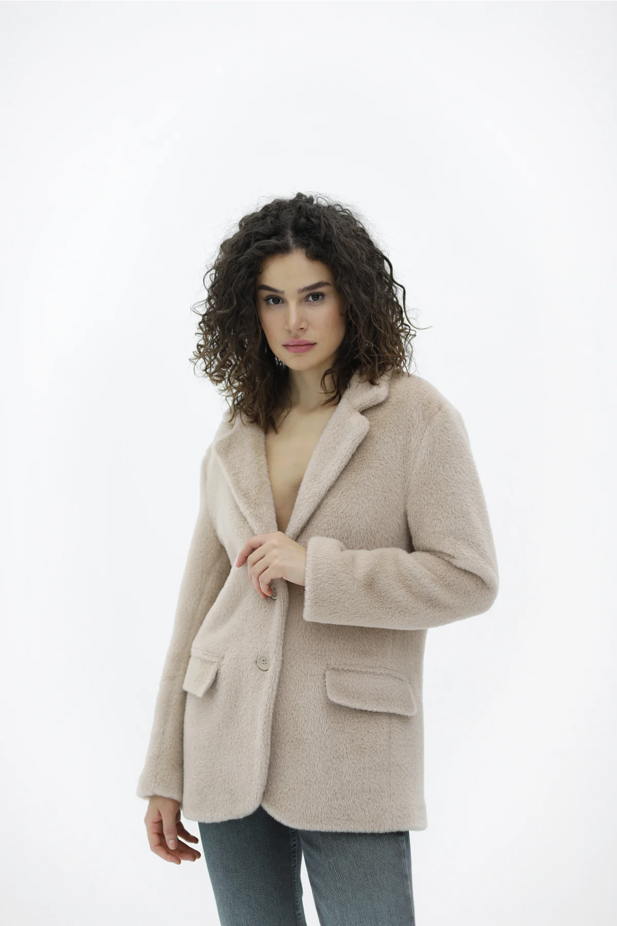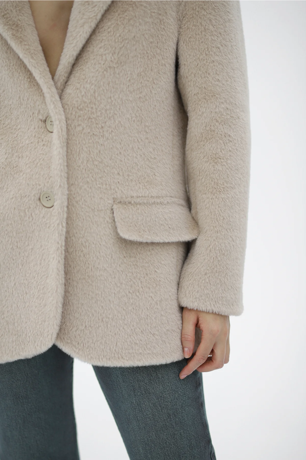 Çift Cepli Düğmeli Alpaka Bej Ceket