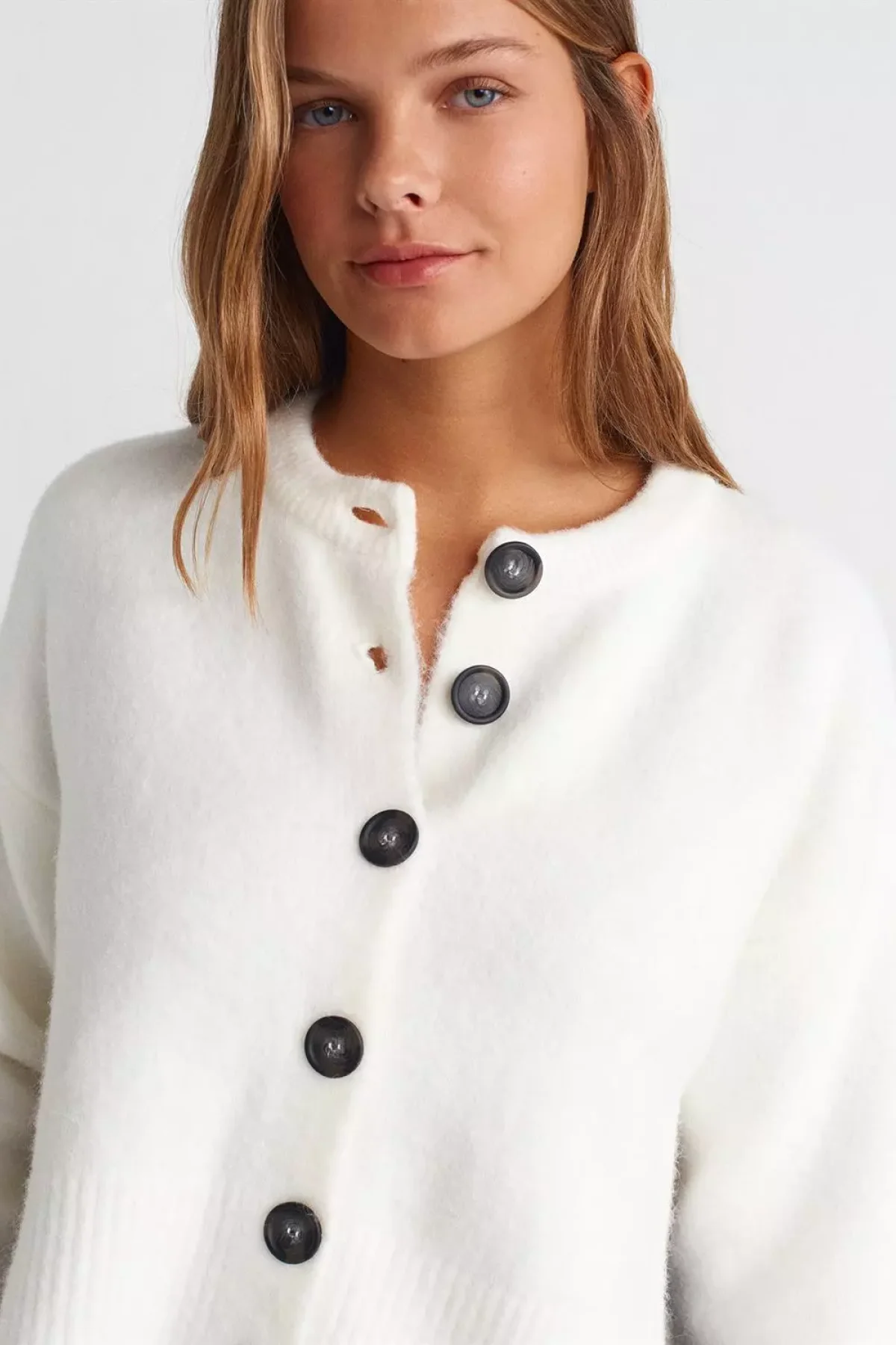 “Dik Yaka Düğmeli Yumuşak Dokulu Ekru Hırka” için yorum yapan ilk kişi siz olun