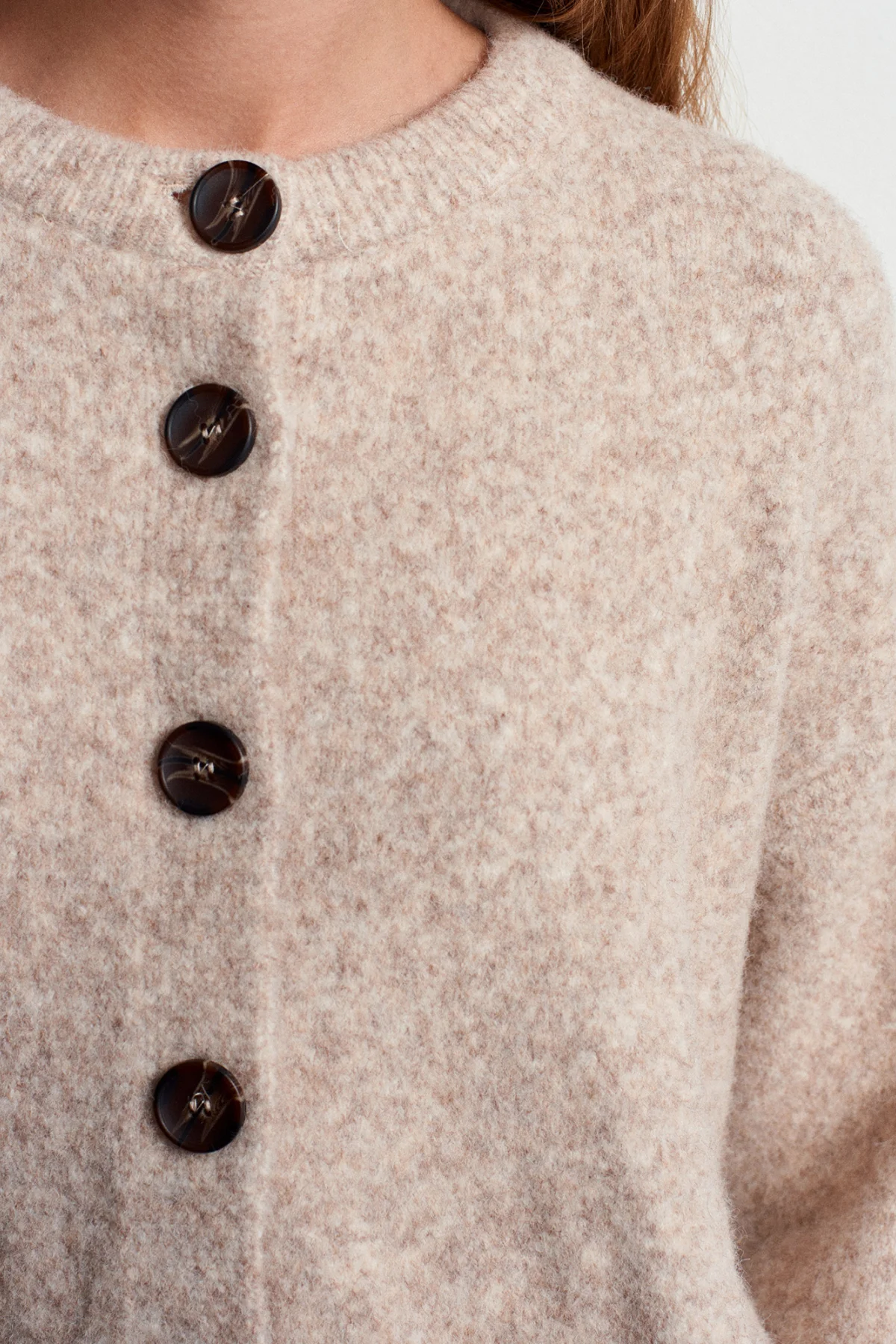 Dik Yaka Düğmeli Yumuşak Dokulu Koyu Bej Hırka