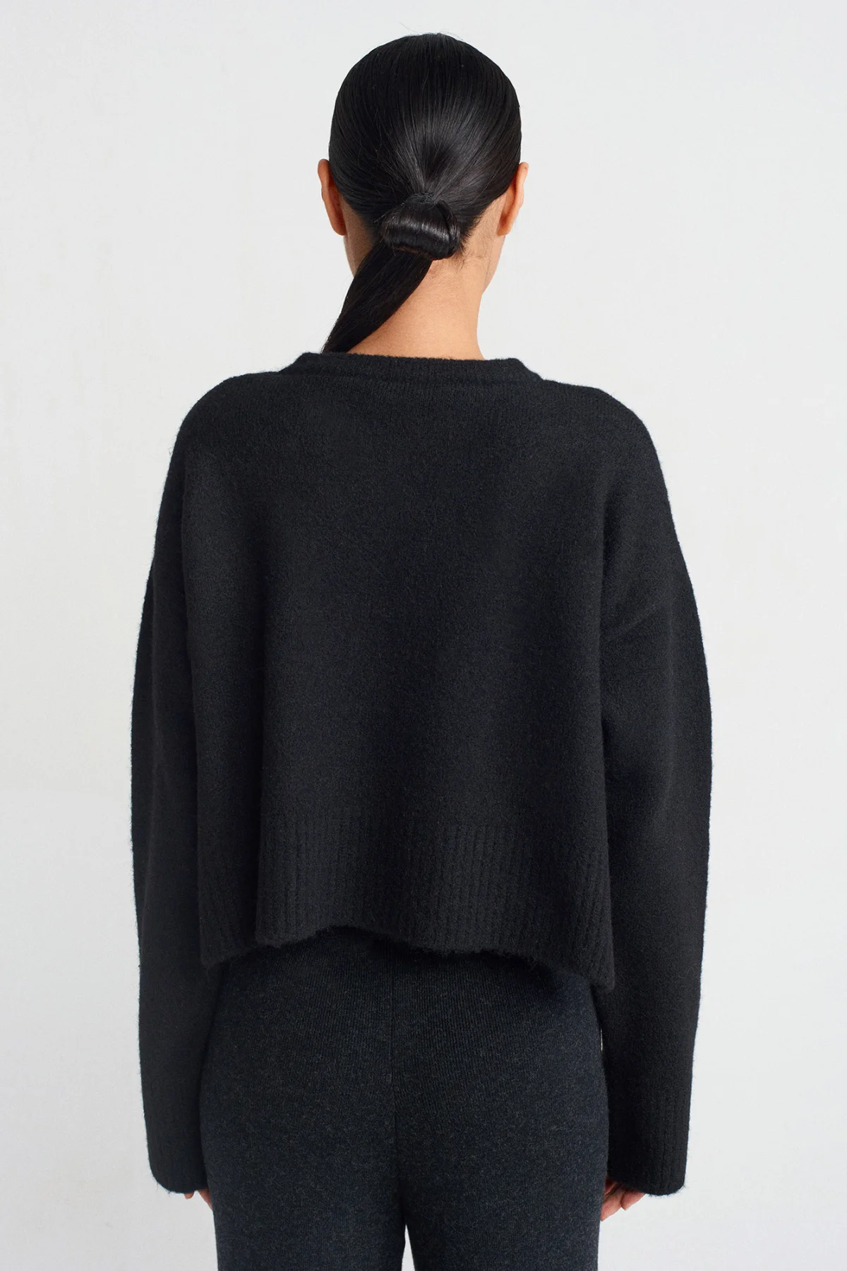 Dik Yaka Düğmeli Yumuşak Dokulu Siyah Hırka