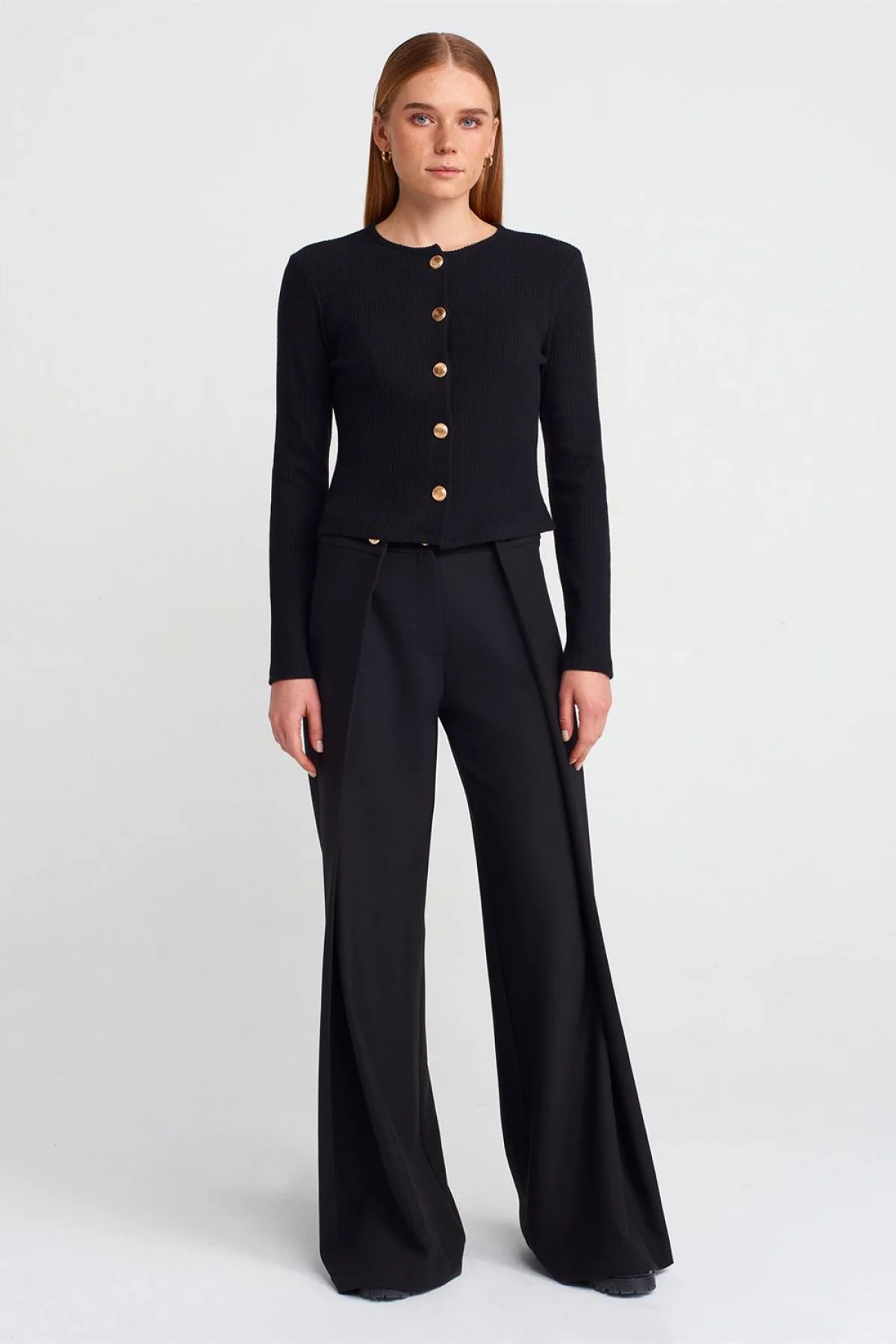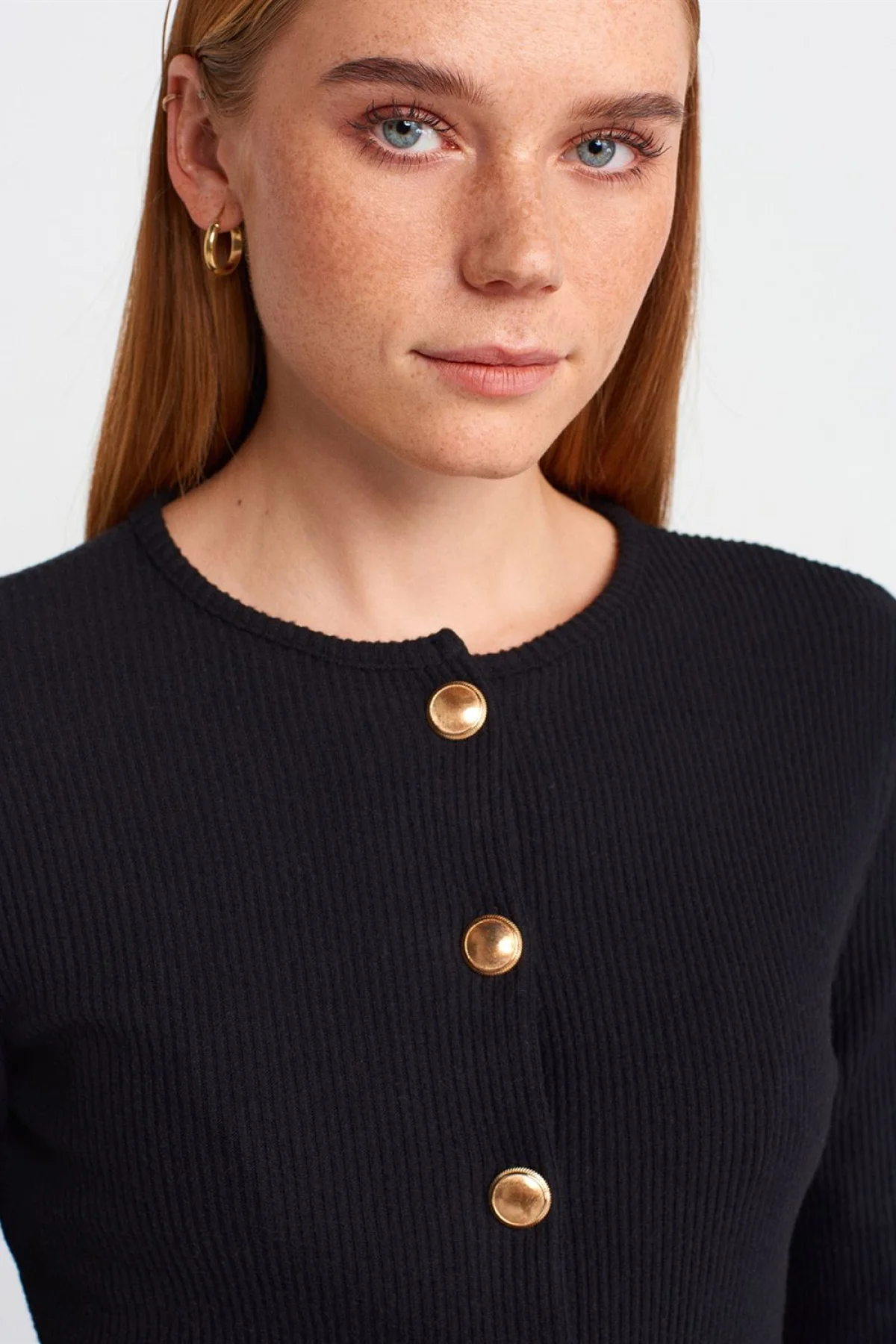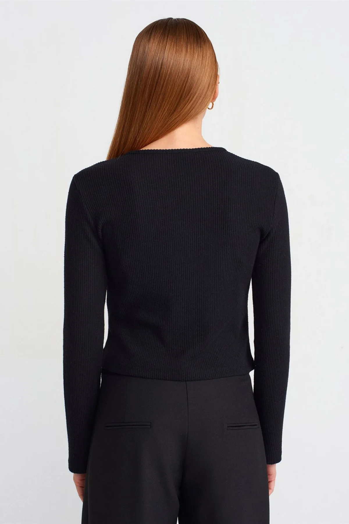 Düğme Detaylı Uzun Kollu Siyah Hırka