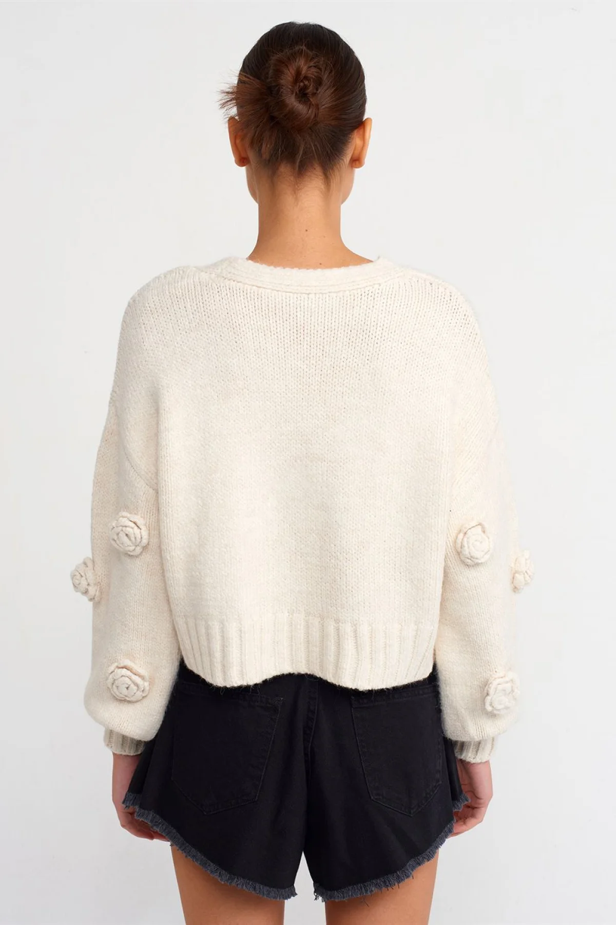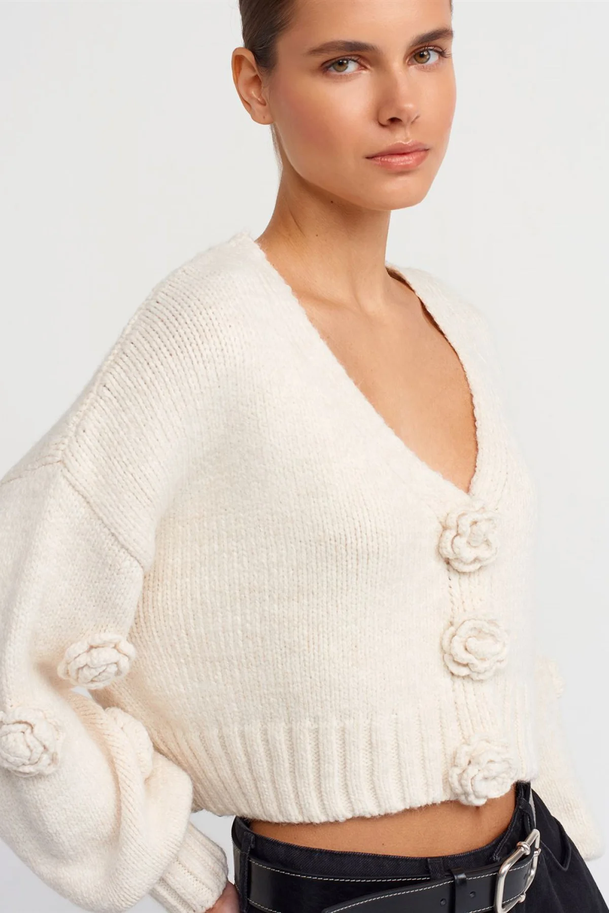 El İşi Nakışlı Balon Kol Ekru Hırka