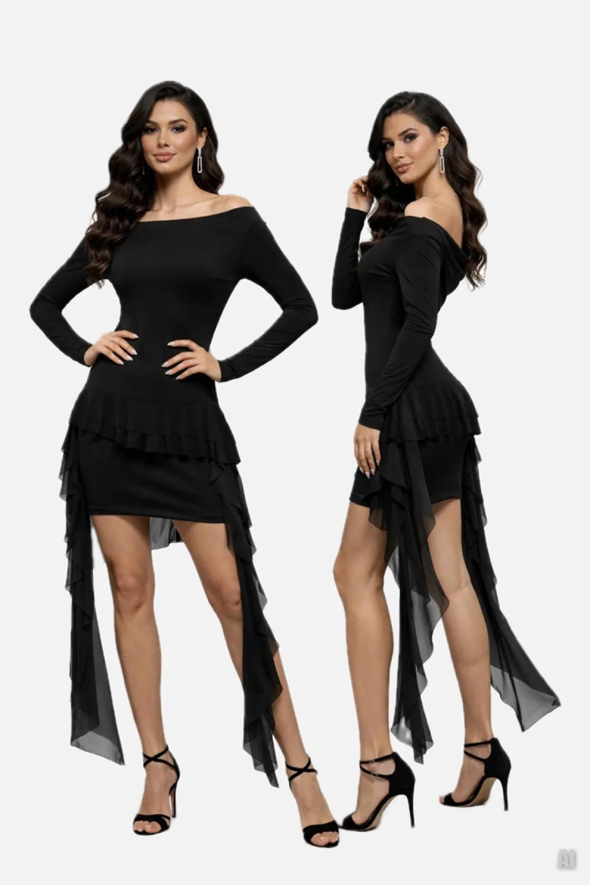 “Kayık Yaka Volanlı Siyah Elbise” için yorum yapan ilk kişi siz olun