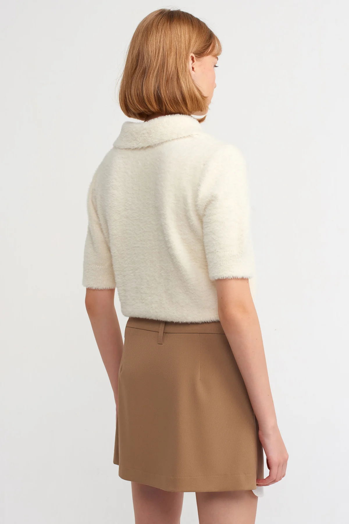 Polo Yaka Düğmeli Yumuşak Krem Kazak