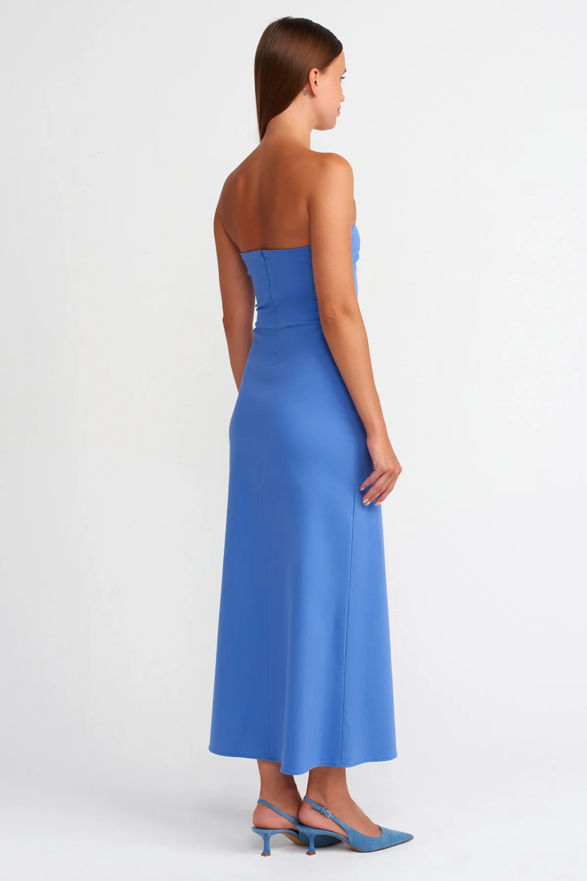 Straplez İndigo Elbise