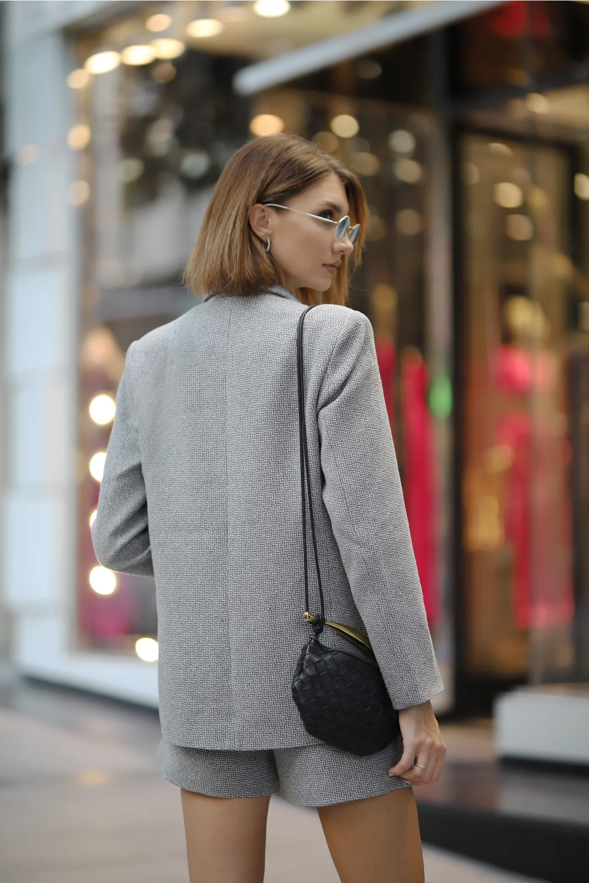 Tek Düğmeli Gri Tüvit Blazer Ceket