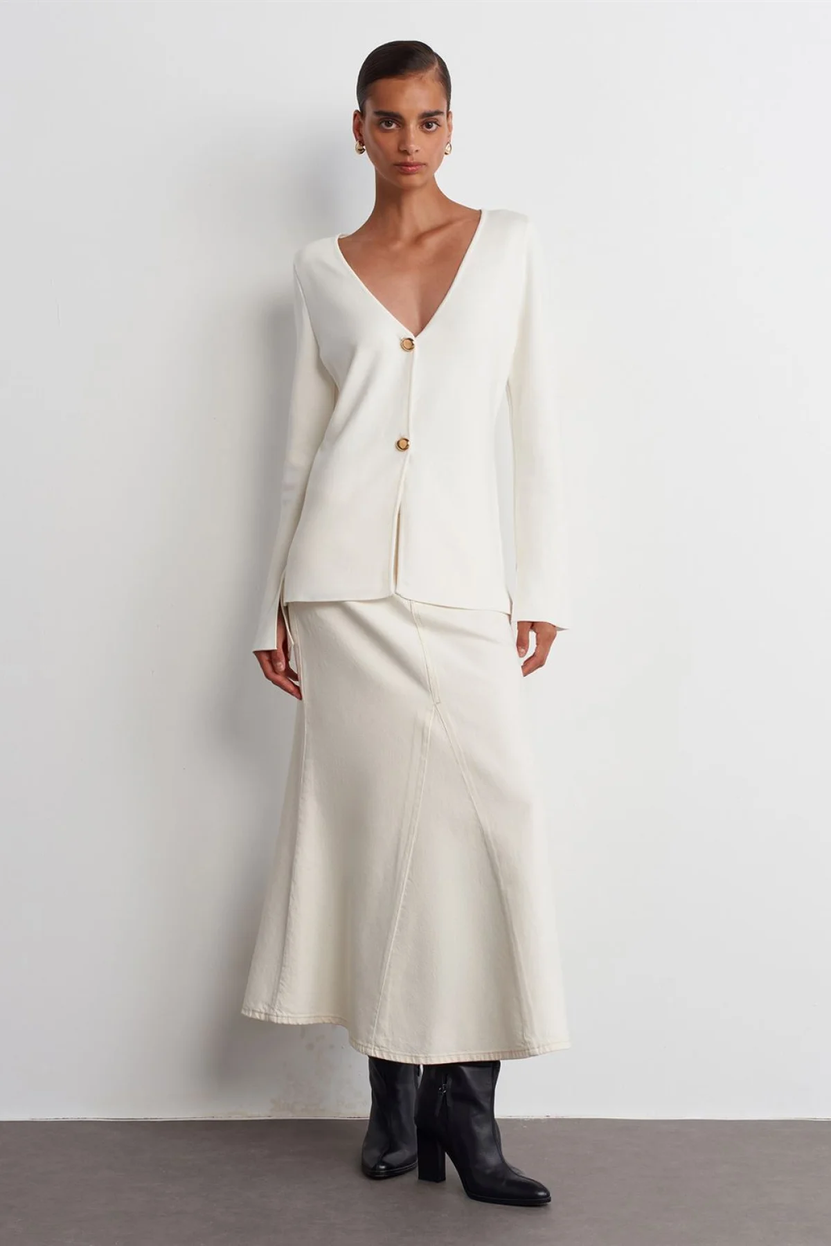 “V Yaka Kol Yırtmaç Detaylı Triko Ekru Hırka” için yorum yapan ilk kişi siz olun