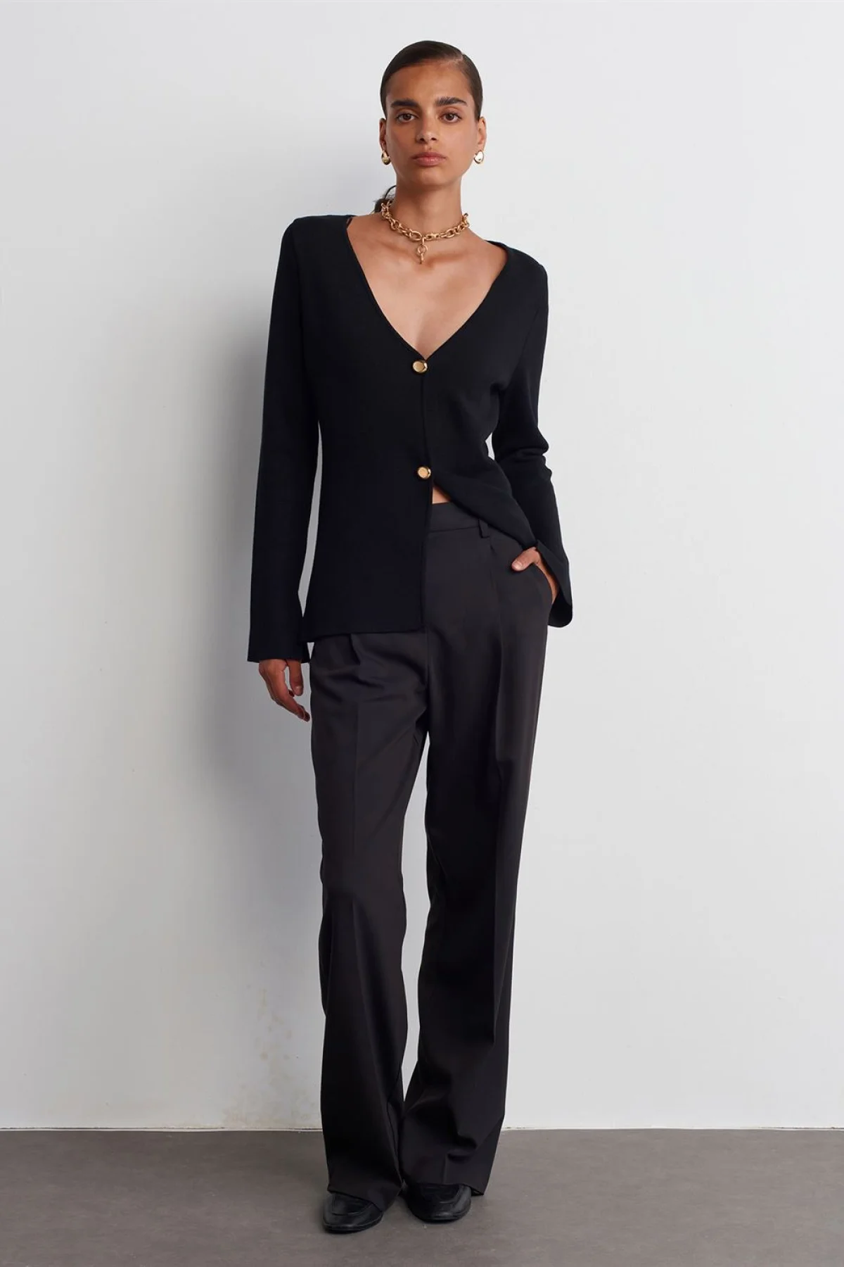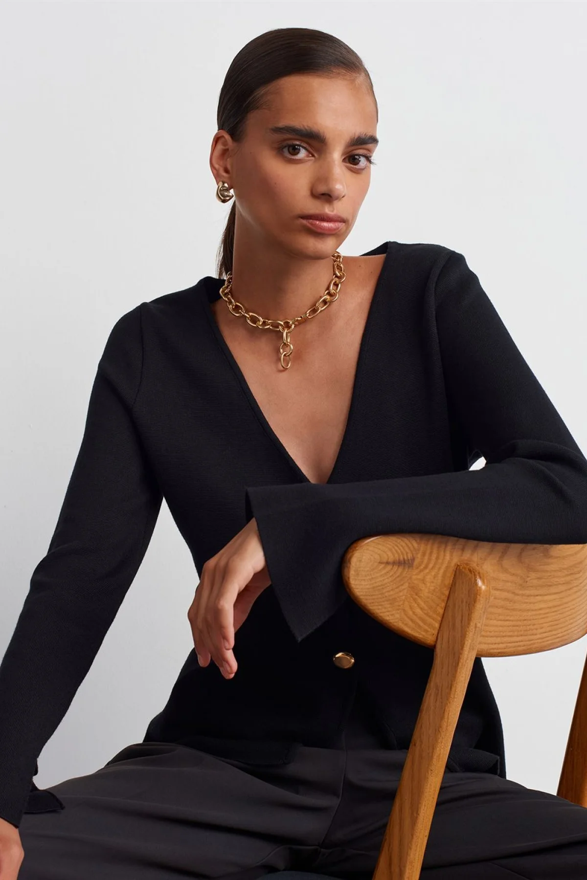 “V Yaka Kol Yırtmaç Detaylı Triko Siyah Hırka” için yorum yapan ilk kişi siz olun