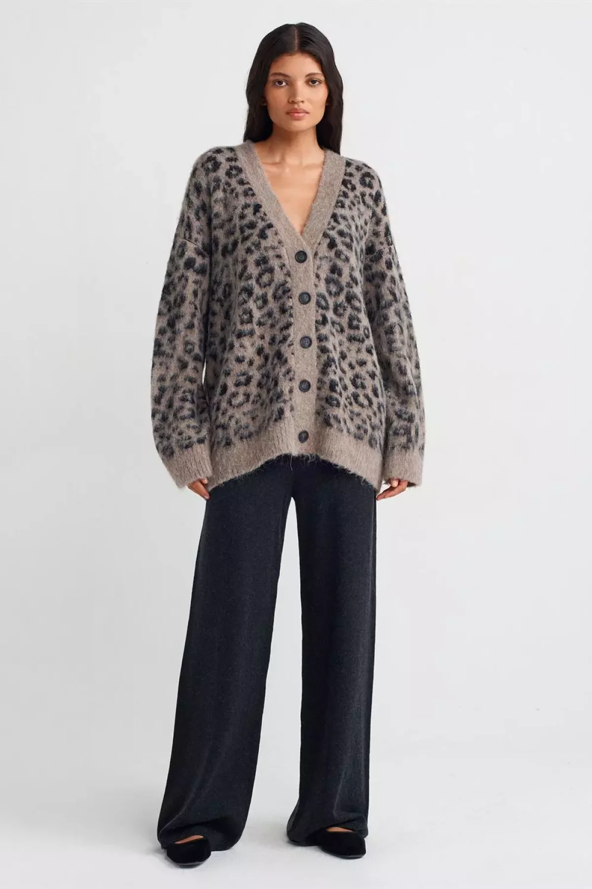 “V Yaka Leopar Şardonlu Düğmeli Hırka” için yorum yapan ilk kişi siz olun