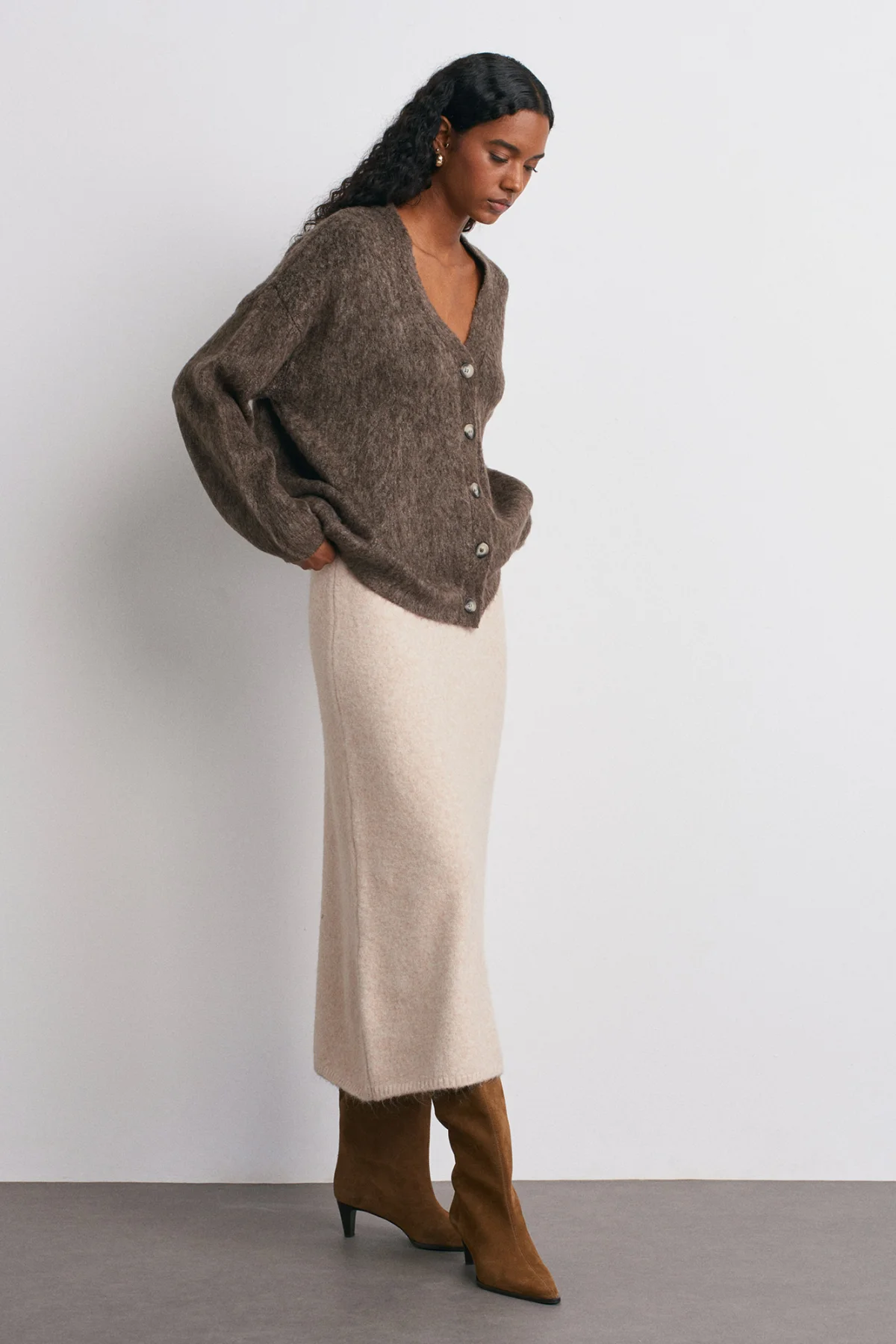 “V Yaka Şardonlu Düğmeli Triko Kahve Hırka” için yorum yapan ilk kişi siz olun