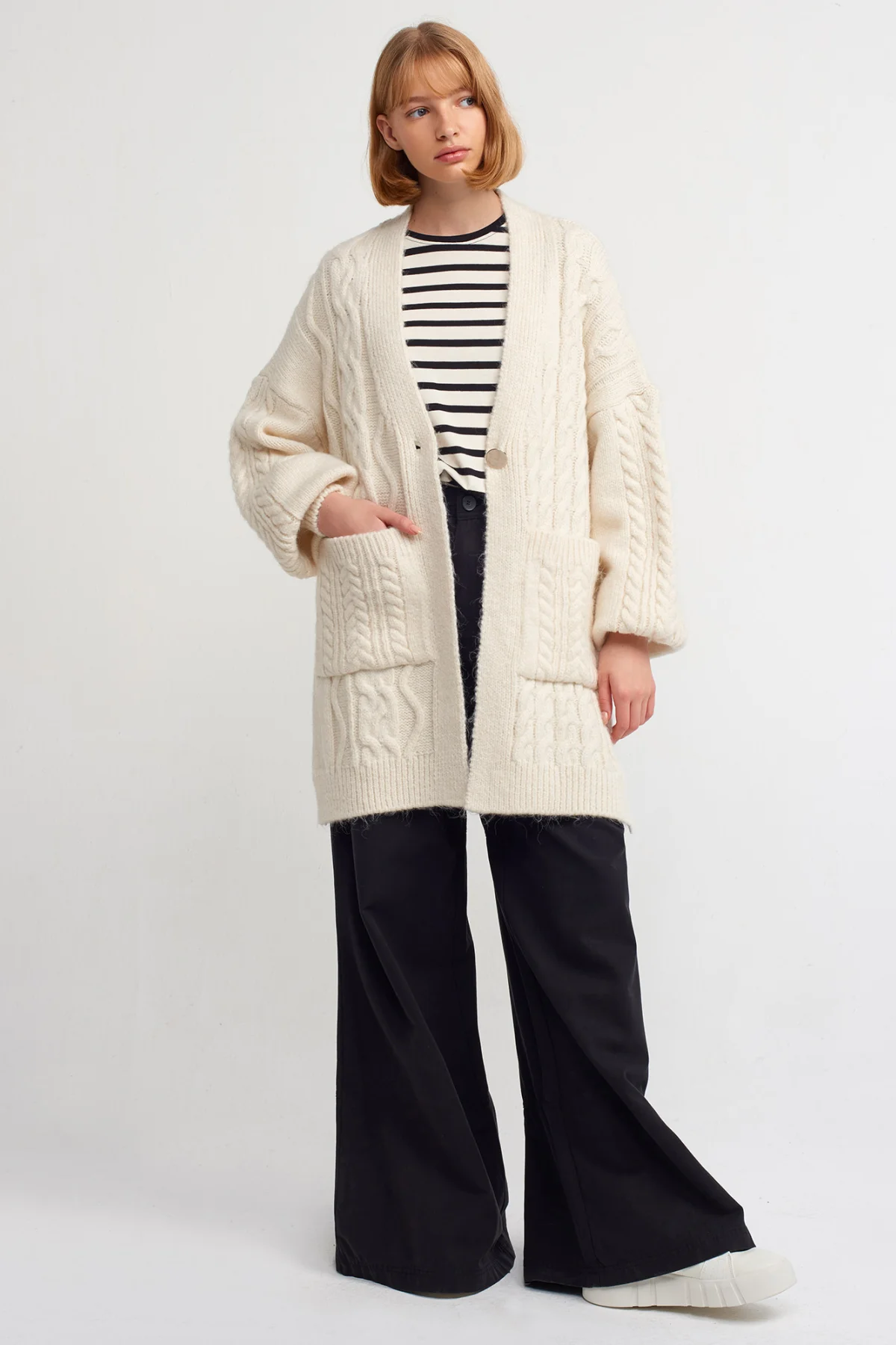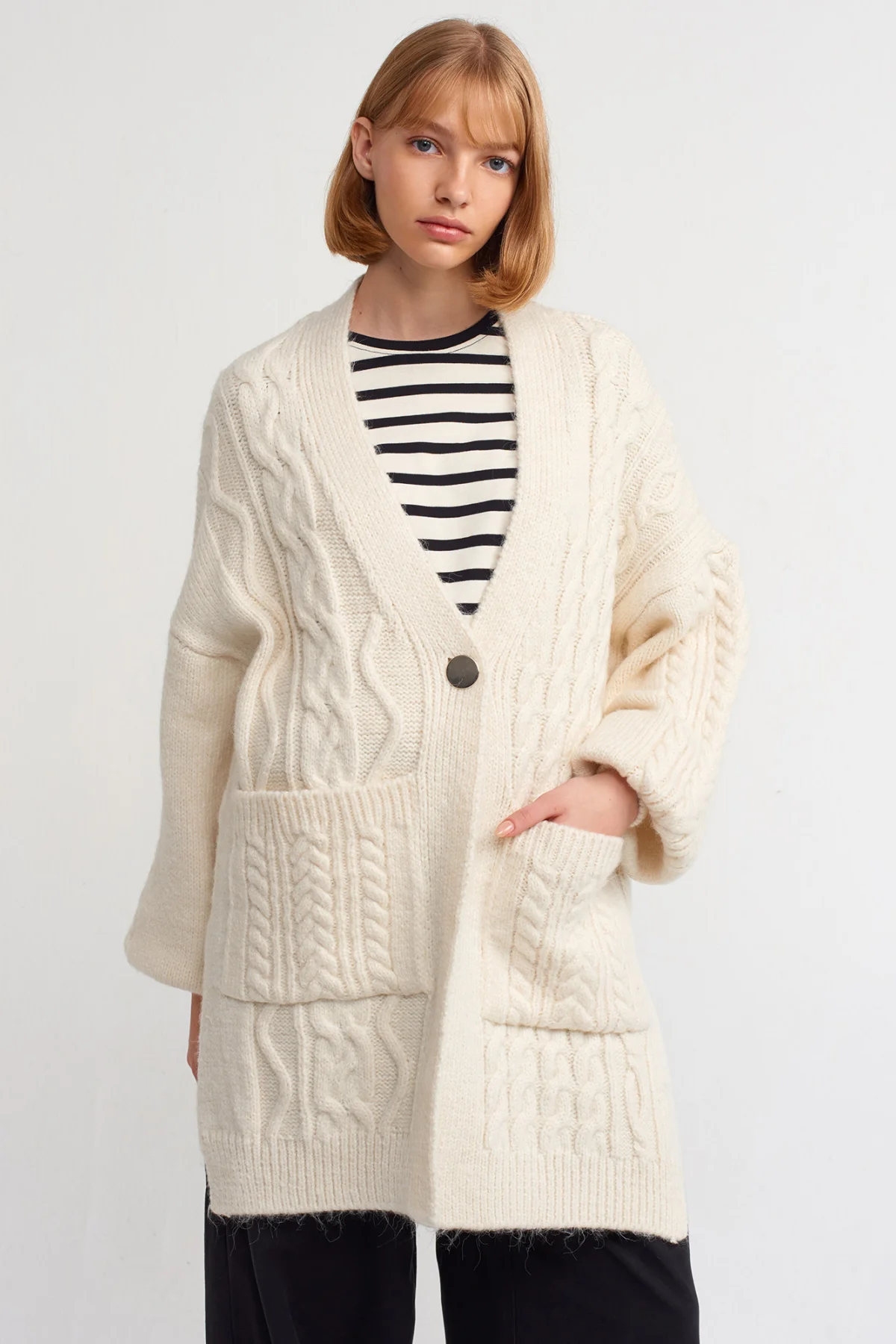 “V Yaka Tek Düğmeli Krem Hırka” için yorum yapan ilk kişi siz olun