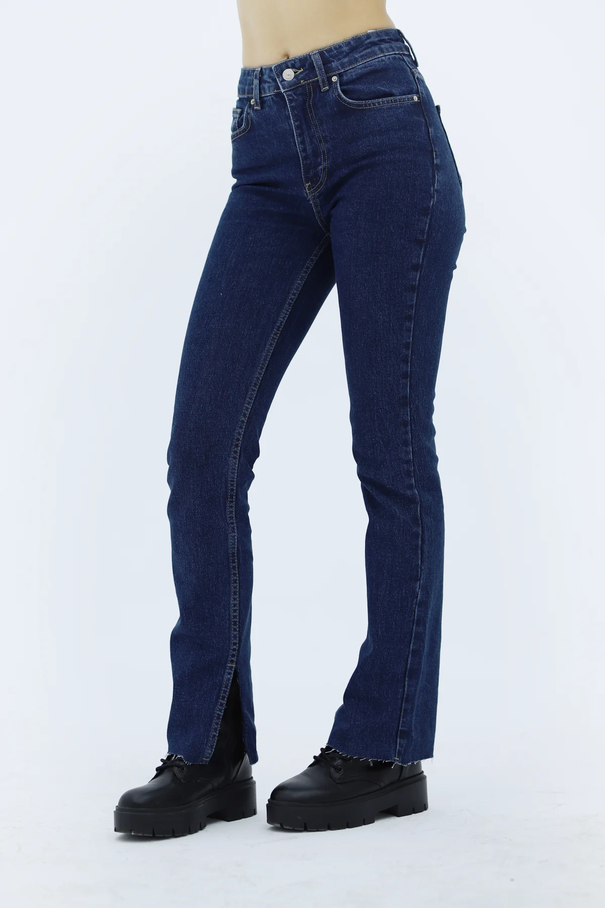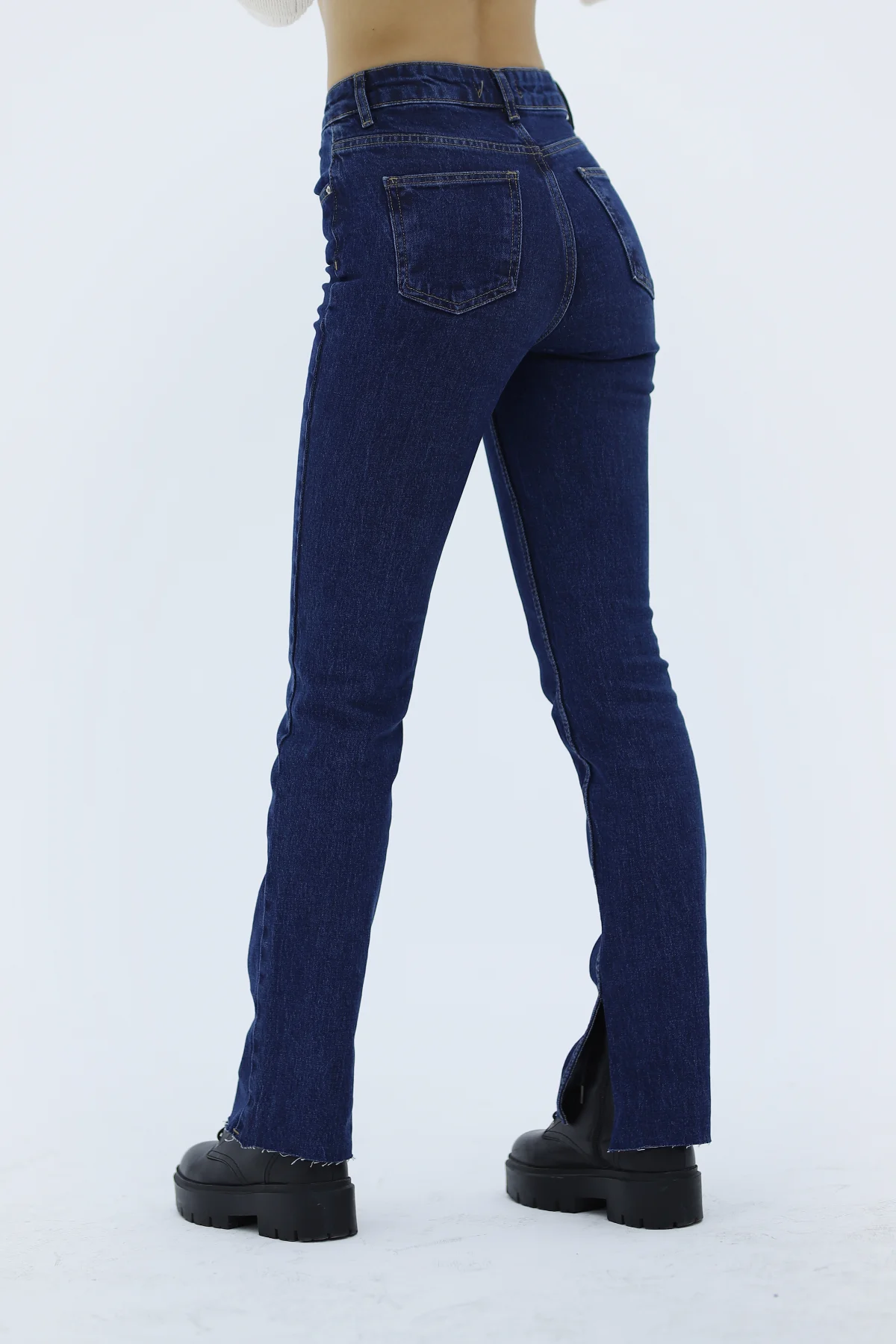 Yanı Kesik Straight Mavi Pantolon