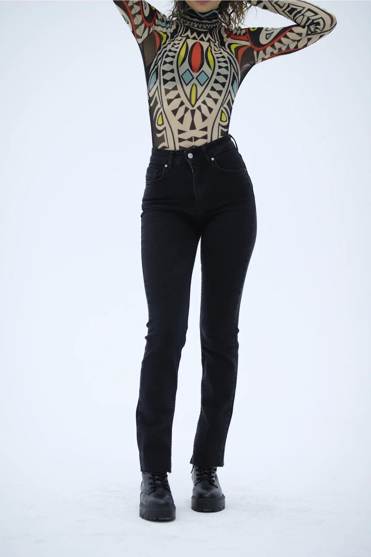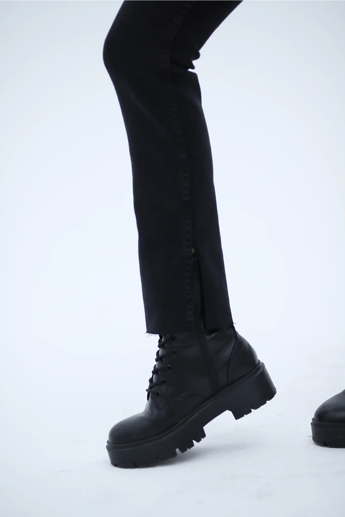Yanı Yırtmaçlı Boru Paça Pantolon Siyah