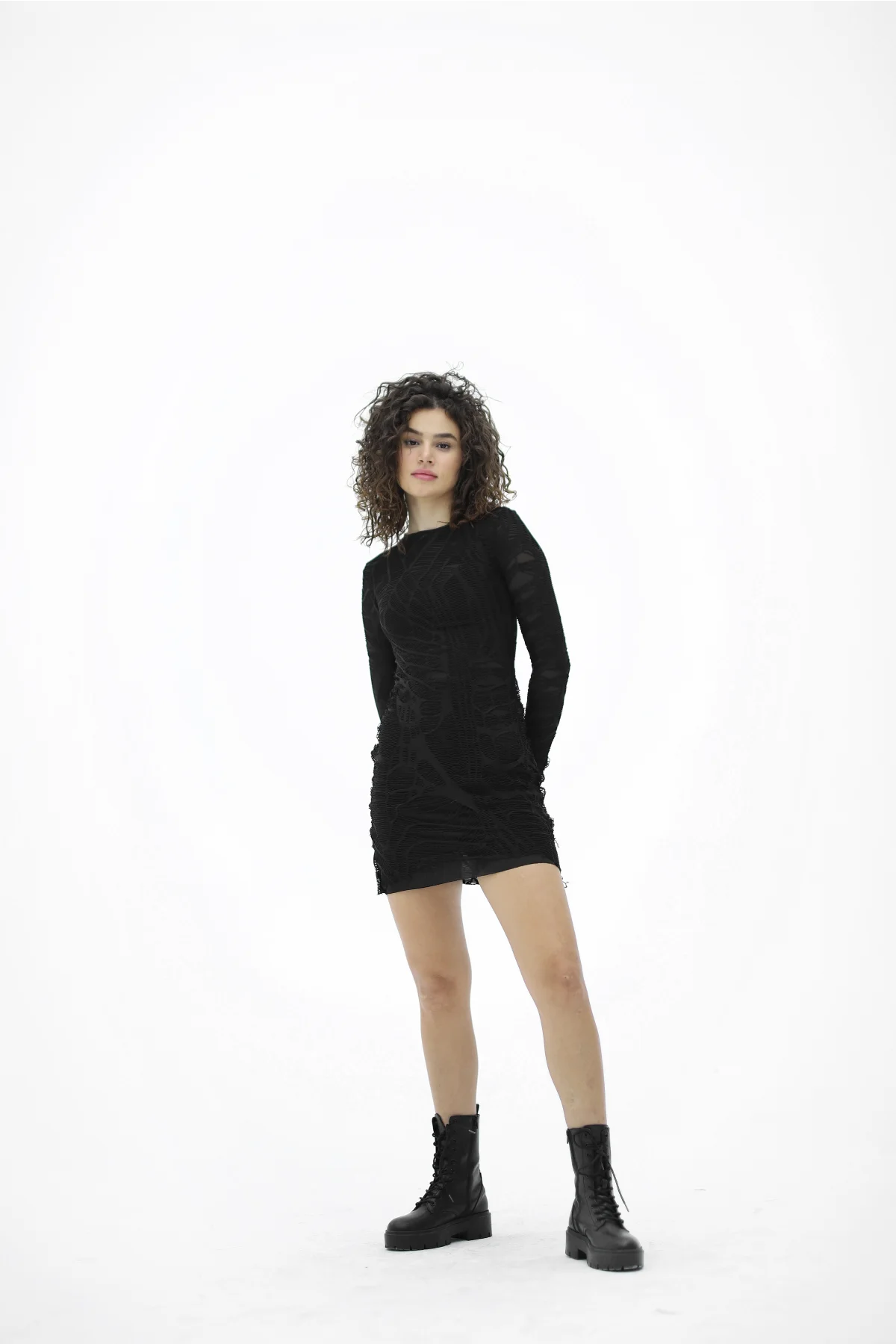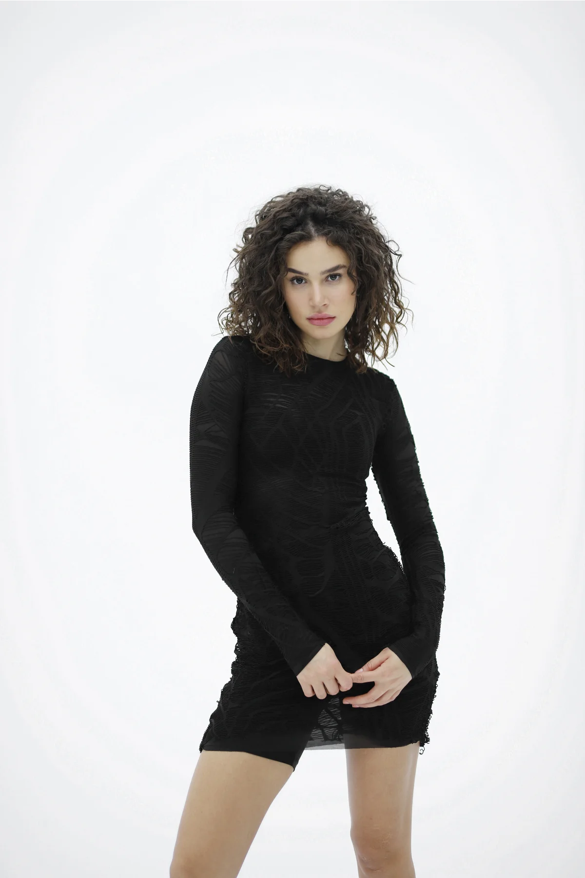 Yırtık Desenli Tasarım Mini Siyah Elbise