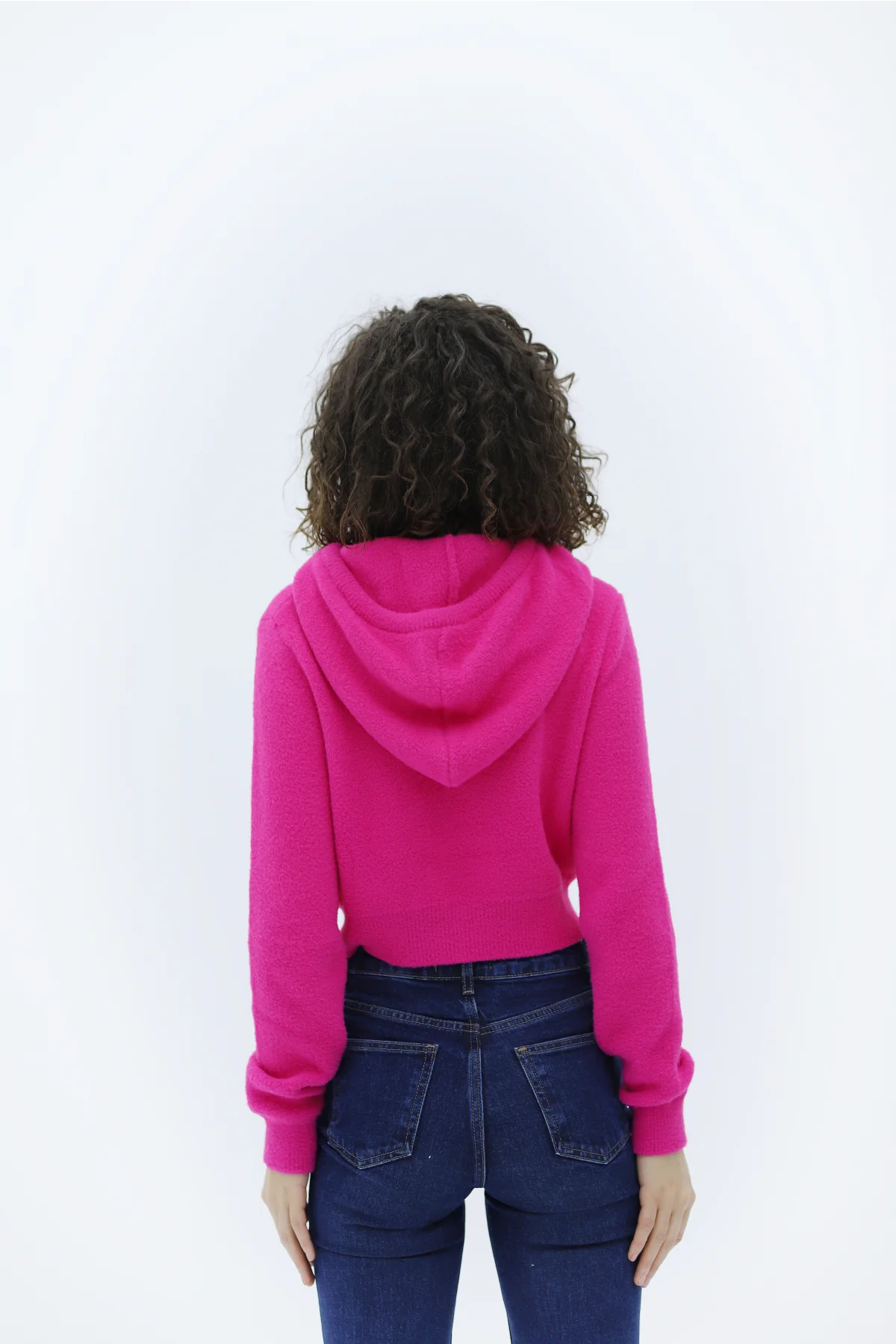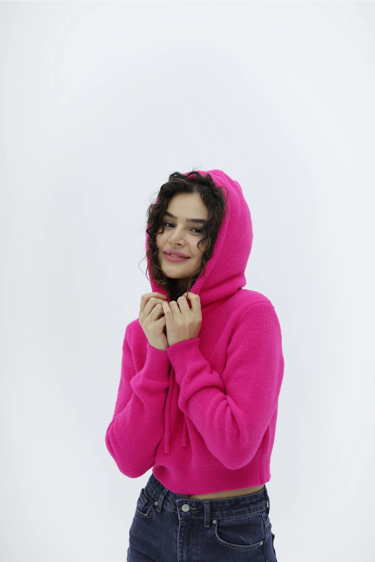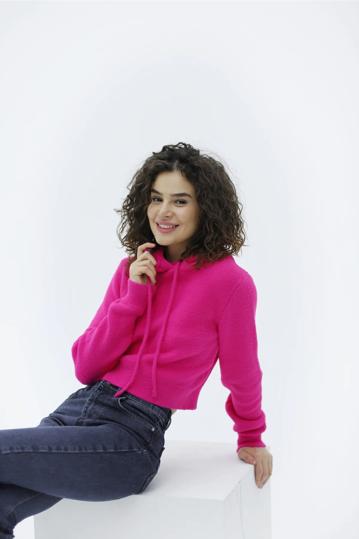 Yumuşak Dokulu Kapşonlu Fuşya Kazak