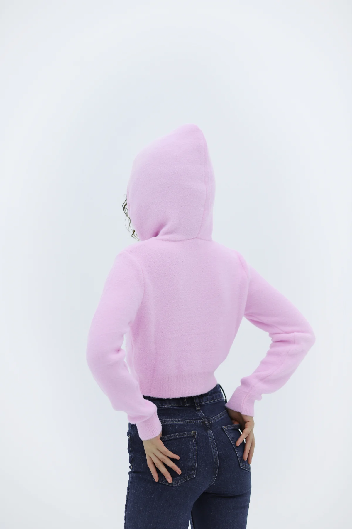 Yumuşak Dokulu Kapşonlu Pembe Kazak