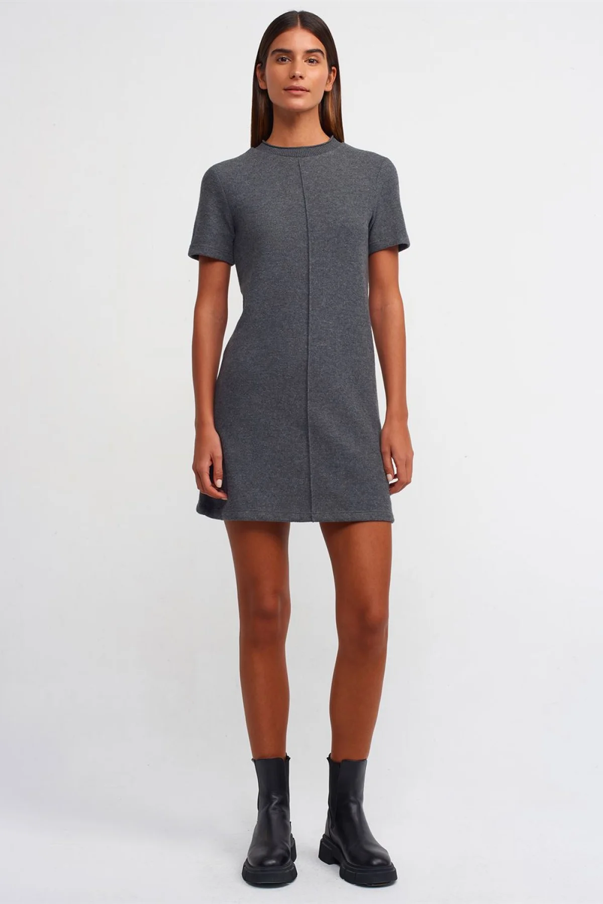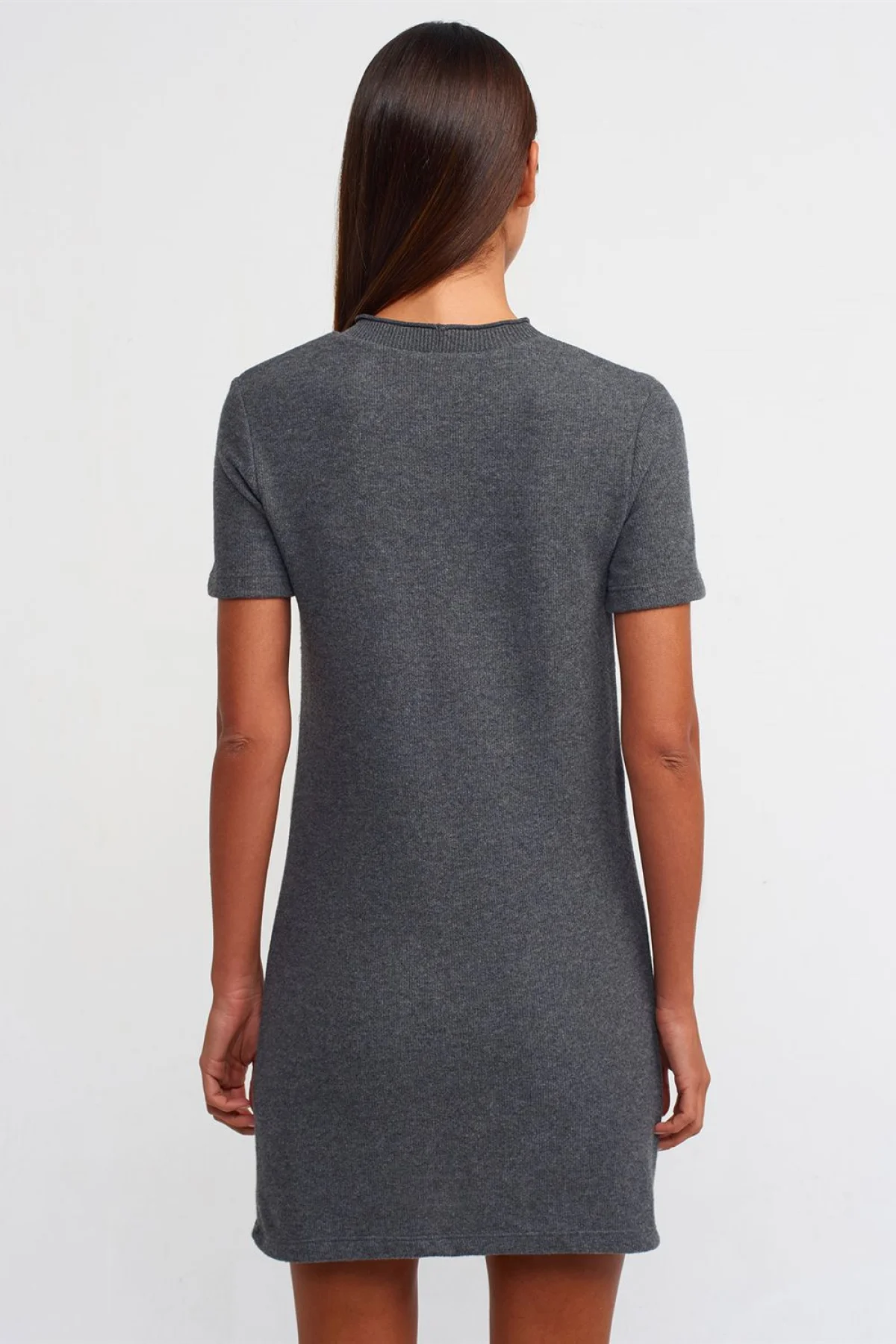 Yumuşak Mini Antrasit Melanj Elbise